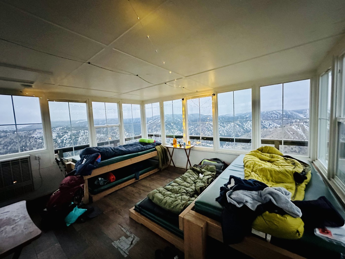 Overnight stay at steliko. Beautiful even with clouds and no snow. We did need spikes on way up as road hard packed and icy for first half. Lots of deer in morning. Hopefully more snow soon! Lookout is in great condition and very comfortable.