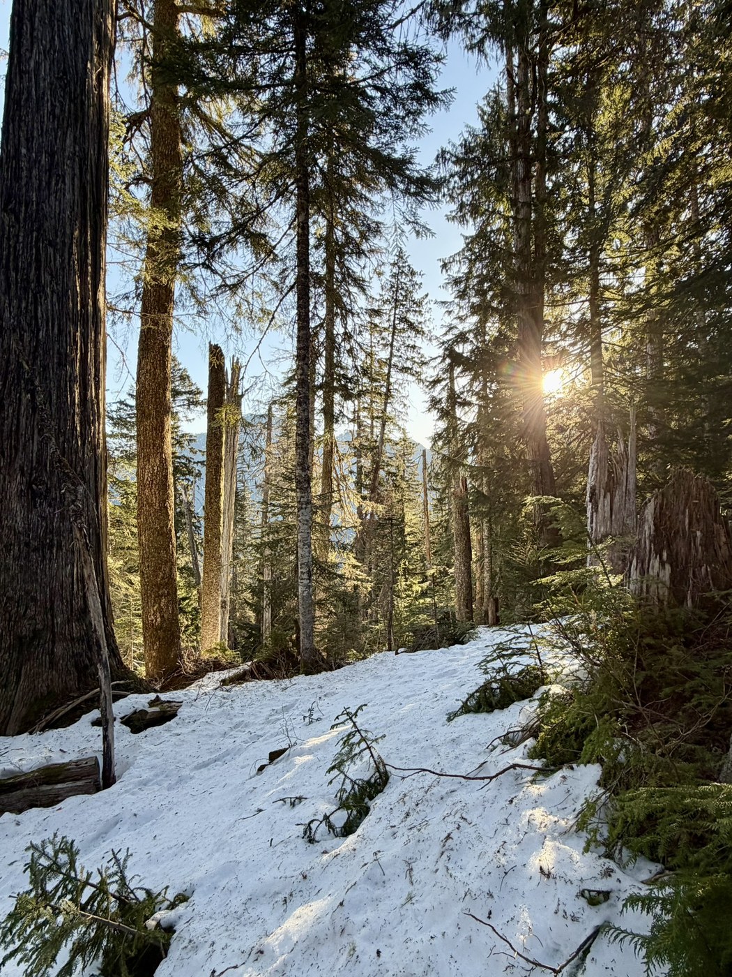 Intermittent snow starting at 3’o Clock Rock, with roots, muds, slick rocks between this and ~2,900 ft when snow became more permanent and at which time I put micro spikes on. Brought but did not need snowshoes.