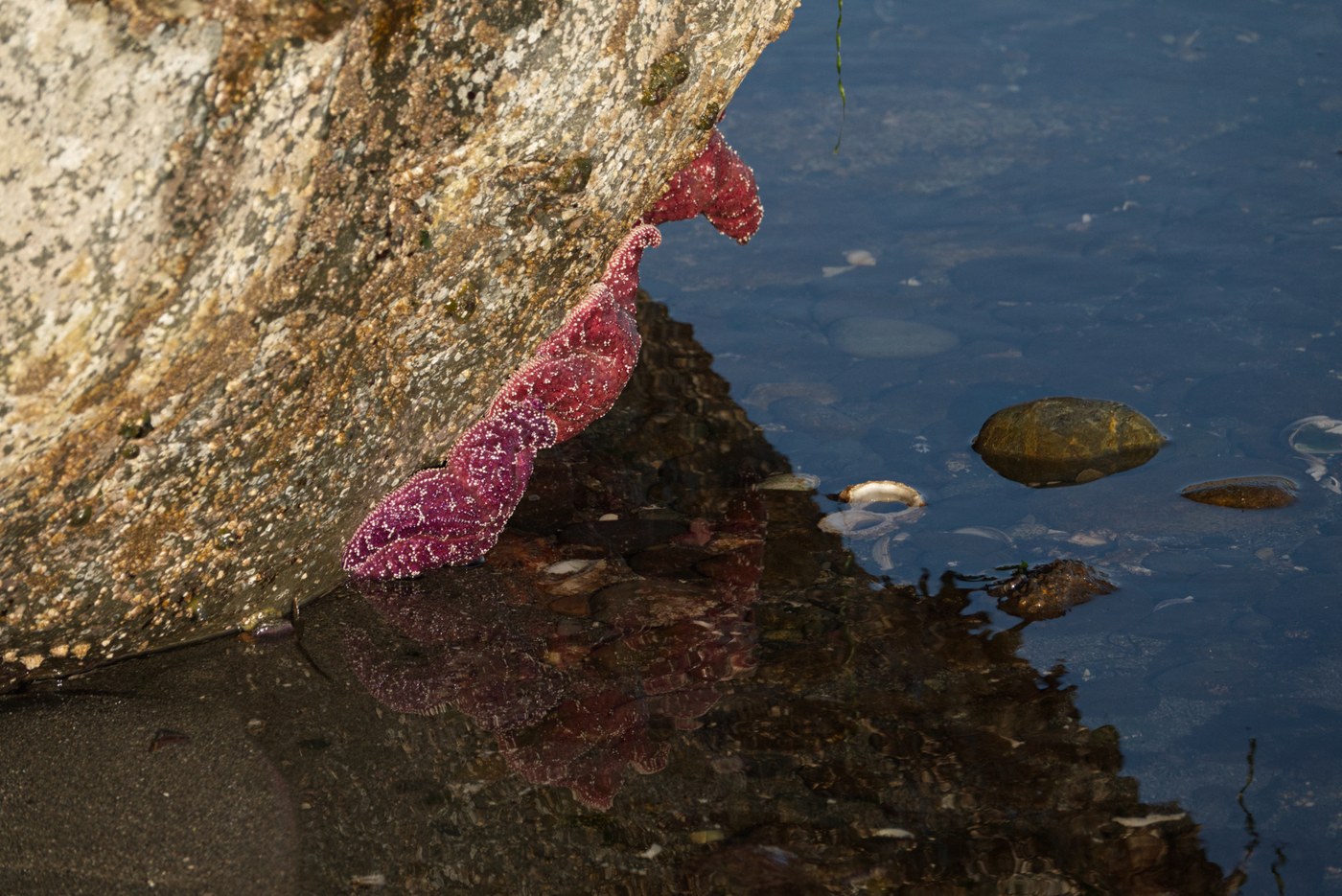 On 1/25, low tide was at 3:23 pm with +1.3' sea level. That exposed lots of beach and tide pools with sea stars, sea anemones and many other invertebrates. Bird life was plentiful although typically a ways offshore. Bring binoculars. Dogs were invariably friendly.