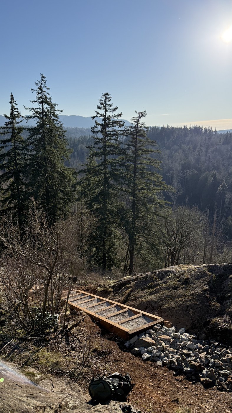 This WTA Trail Workparty was one in a very long series aiming to increase safety and access to this amazing viewpoint in Mount Vernon. There are no amenities at the trailhead, no signage, and in some places no stable footing (yet). Don't come here till it's officially open, for your safety and the safety of the crews working hard!