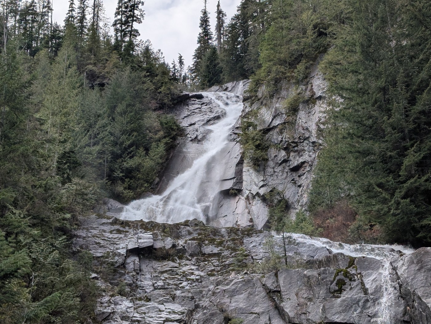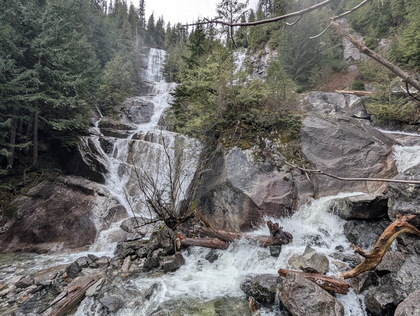The trail gets a bit tricky just before you reach the lower falls. You have to veer left to follow a faint path to the rocks along the creek, then climb back into the trees to your right, where the trail becomes more obvious again.