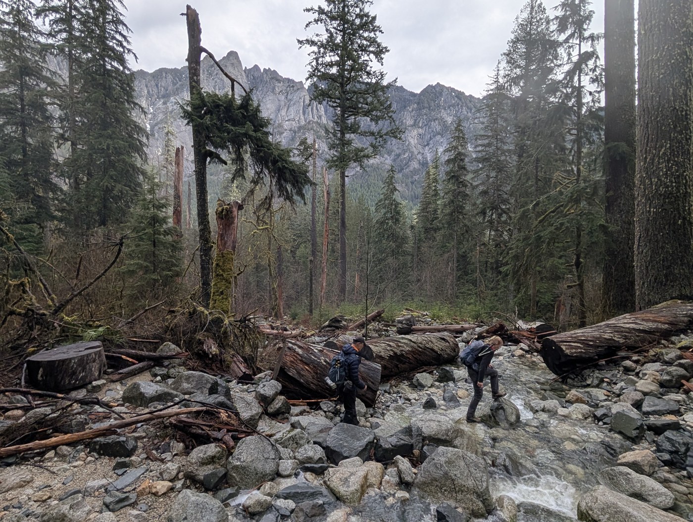 MIDDLE FORK TRAIL: Thank you to the four-person volunteer logout crew on the trail today! After their efforts, the trail is now free of blowdowns all the way from the Middle Fork Trailhead to Dingford Creek. The trail has mud in a few places, but is otherwise in great shape. Someone brushed it out pretty recently, so it's nice and wide in most places, and the forest is mossy and lush as always. This trail has lots of huge trees, plenty of dramatic rock outcroppings, and enough views of the river and nearby Garfield Mountain to keep things interesting.