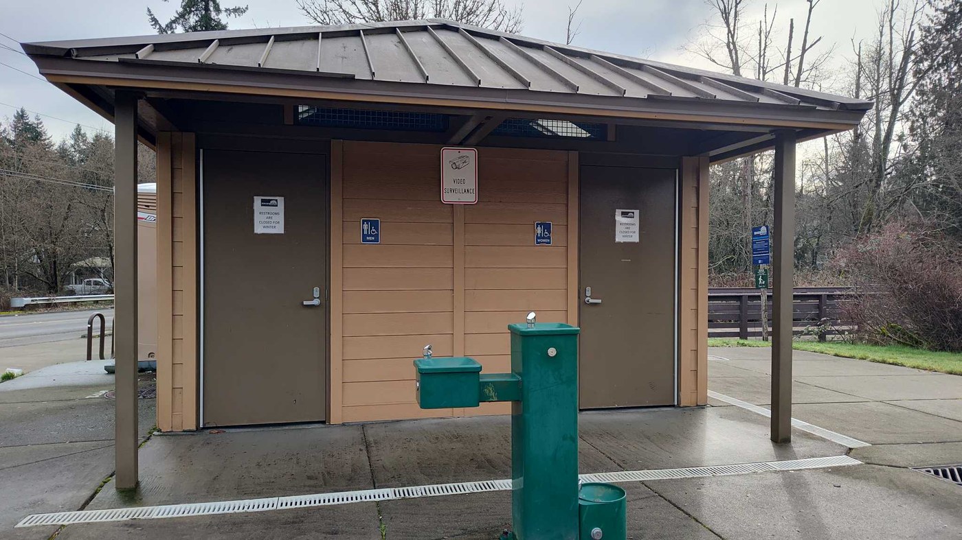 The restrooms are closed for the winter, but there's a portable toilet available at the trailhead on the Jovita Ave. side.