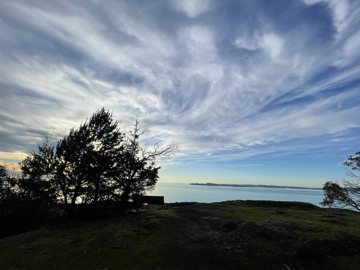 Just a quick trip out to Sare’s Head this afternoon. Red-winged blackbirds were noisy in the marsh. A pileated woodpecker worked the decaying trees. There was a single red-flowering currant blooming - the first I’ve seen this season. One fun surprise was seeing a bunch of different slime molds! So cool! And the view from the bench is spectacular.