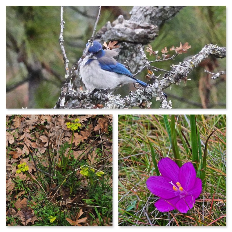 We were the 17th vehicle to park at the TH when we arrived a little after noon. 4 forest service workers were returning to their vehicle as we began our meander. They told us they had been accessing the damage from the Burdoin Fire in July of last year. We walked the trail clockwise and enjoyed the early wildflowers that were blooming. Grass widows were the most prevalent flower and a few had already faded with many more yet to bloom. A few Prairie stars, saxifrage, yellow desert parsley, Columbia desert parsley, and salt and pepper were also seen. The day was cloudy and cool. Only wildlife seen was a scrub Jay.
