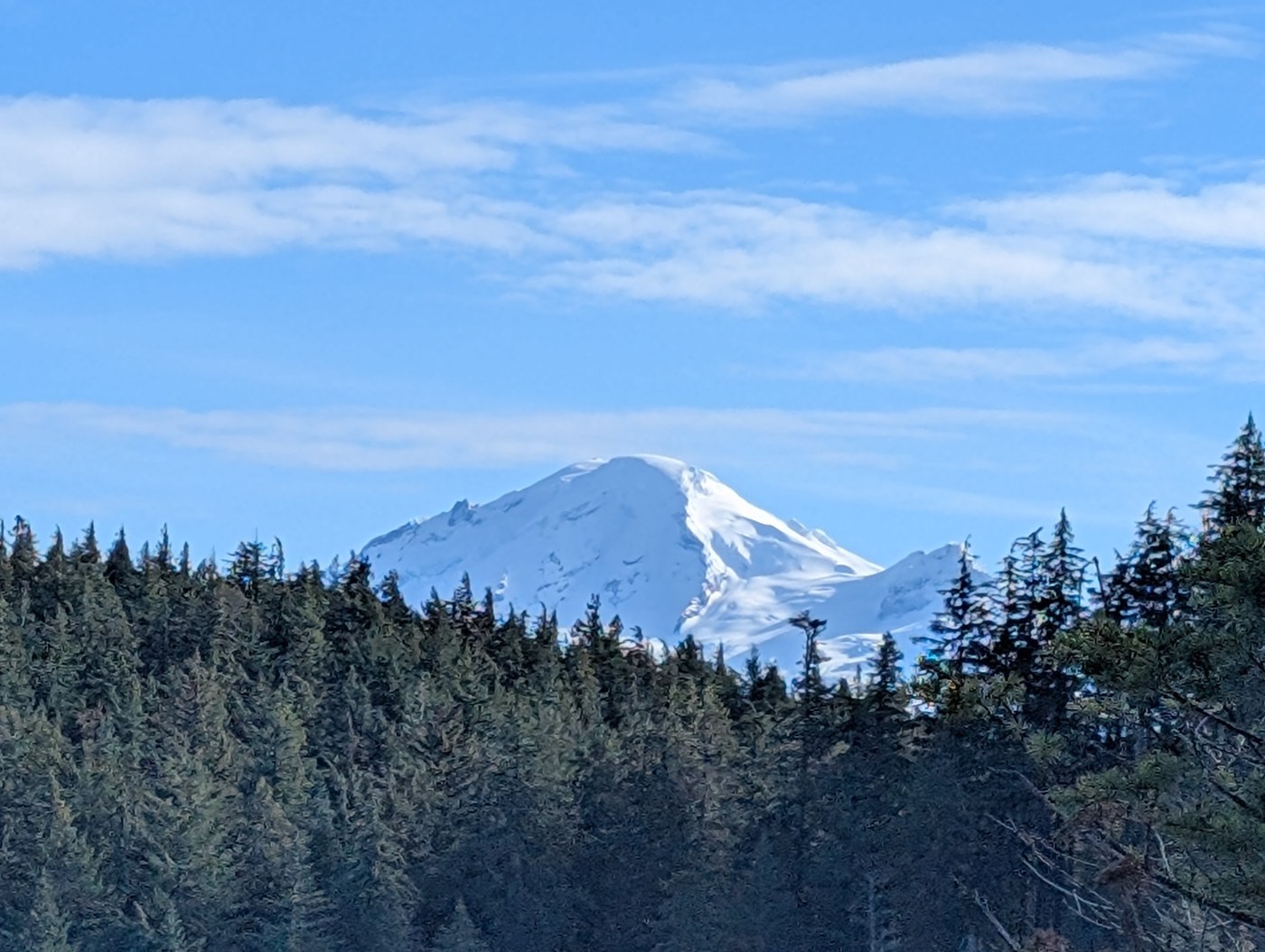 After a short distance the summit trail takes off steeply left and except for a few short reprieves continues to climb steeply. At the next split I took the trail right, this has decent switchbacks and eventually meets back up with the other fork that has been reported to be much steeper. Climbing higher the forest starts to thin and there are a few trees that are easily stepped over. As the trail turned towards the summit, I reached some balds where there are some decent views into Canada and the North Cascades.