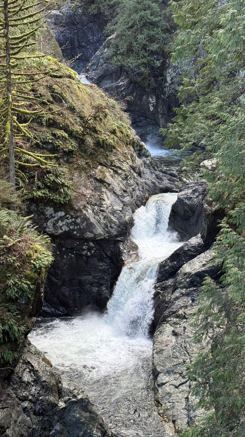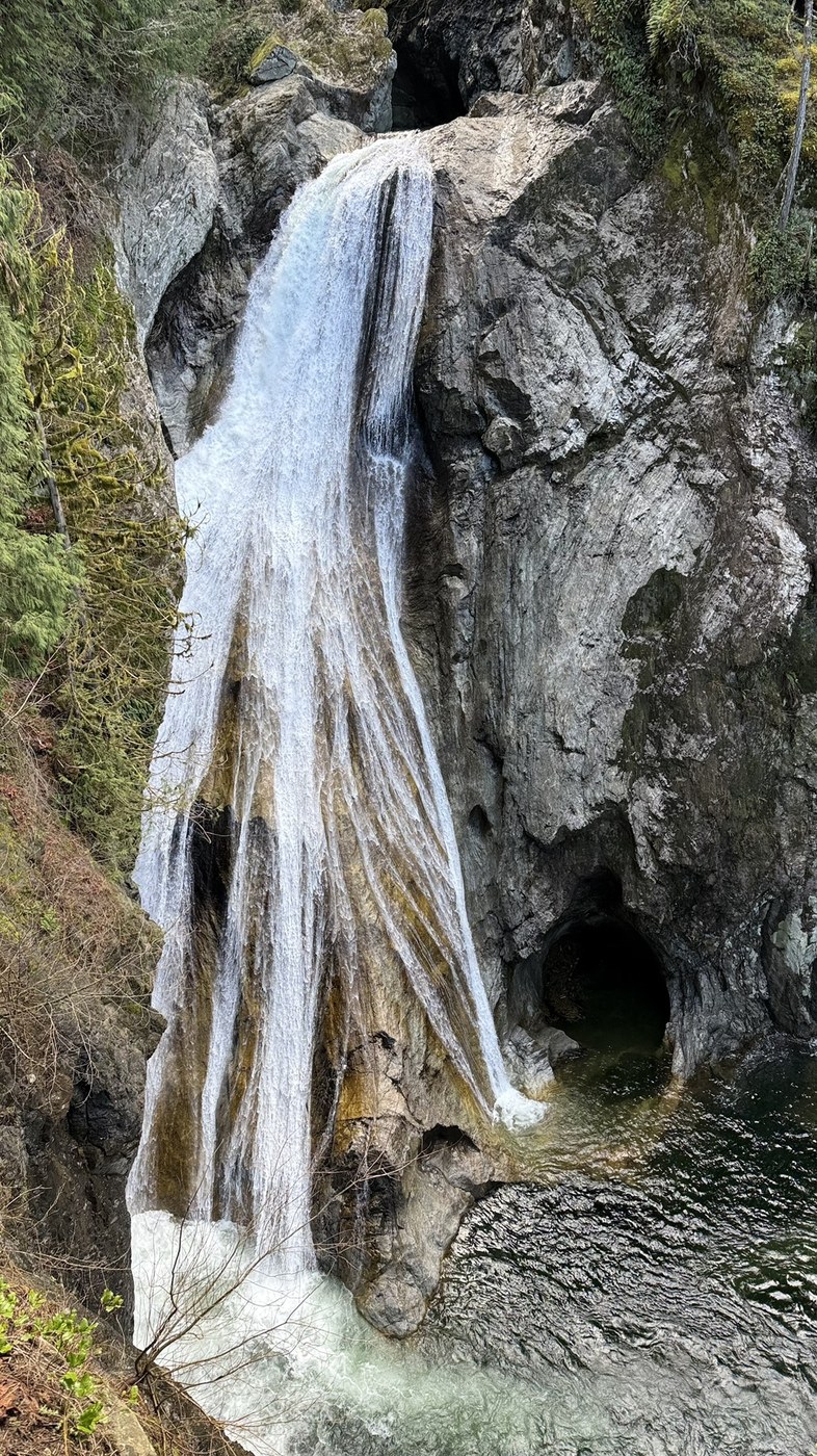 The trail is CLOSED above the upper falls due to a landslide so the Falls are only accessible from the Exit 34 TH. The trail was in pretty good shape with a few blowdowns and eye poking twigs. The falls and river are beautiful and the trees keep getting bigger.