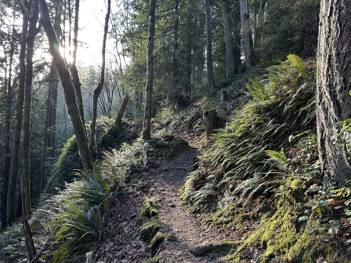 Had the trails to ourselves on a Thursday afternoon. Route in good shape. Hiked on to Shy Bear Valley. One downed tree near the halfway point that was easy to step over. Most of the elevation gain in the first two miles. Definitely the route less traveled on Cougar Mountain!
