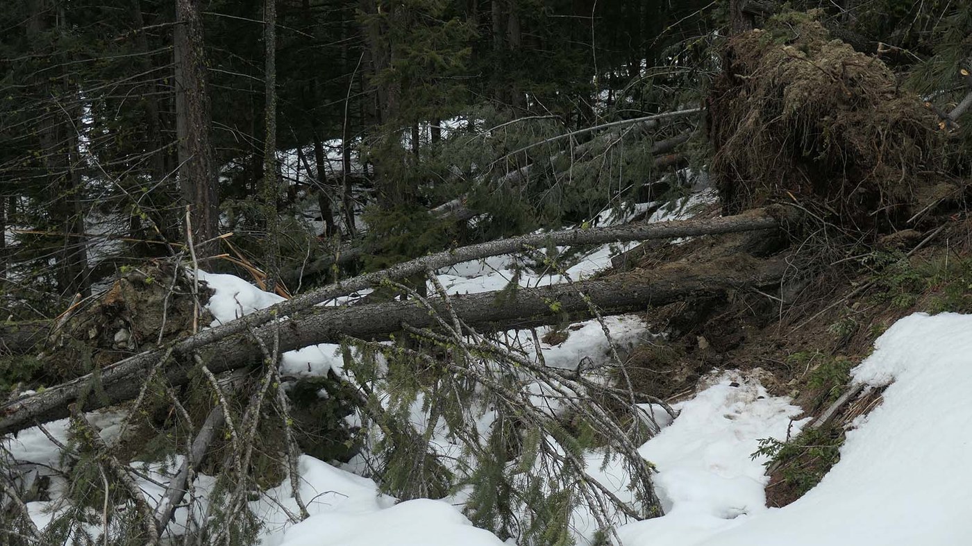 The first 0.2 mile of trail had the first of many trees that had been brought down on the trail by the heavy snow in December. Over the section I hiked, there were quite a few "Tip-Ups" with root disks at least 6ft high. It's going to take a lot of work to repair and clean up this trail.