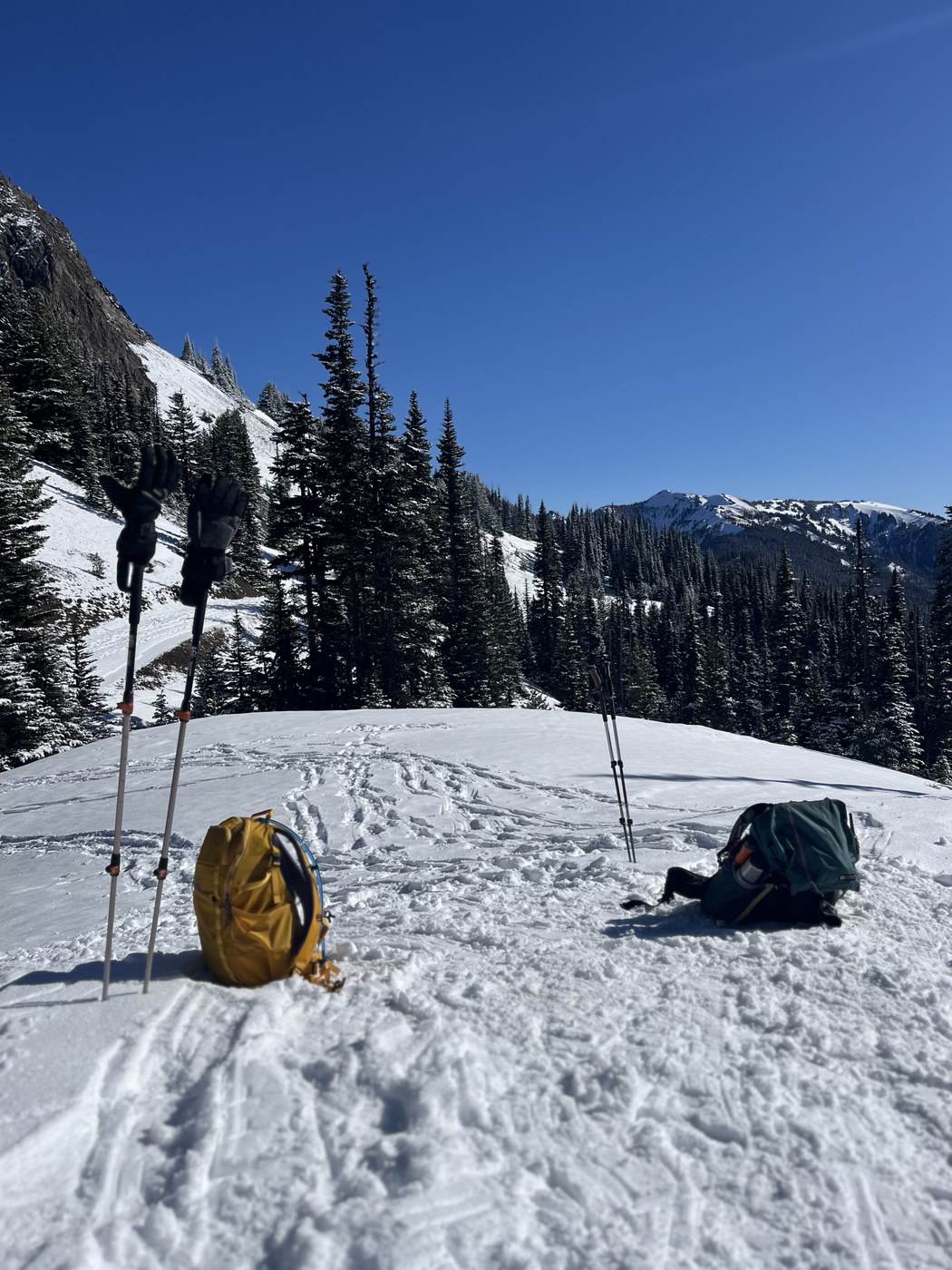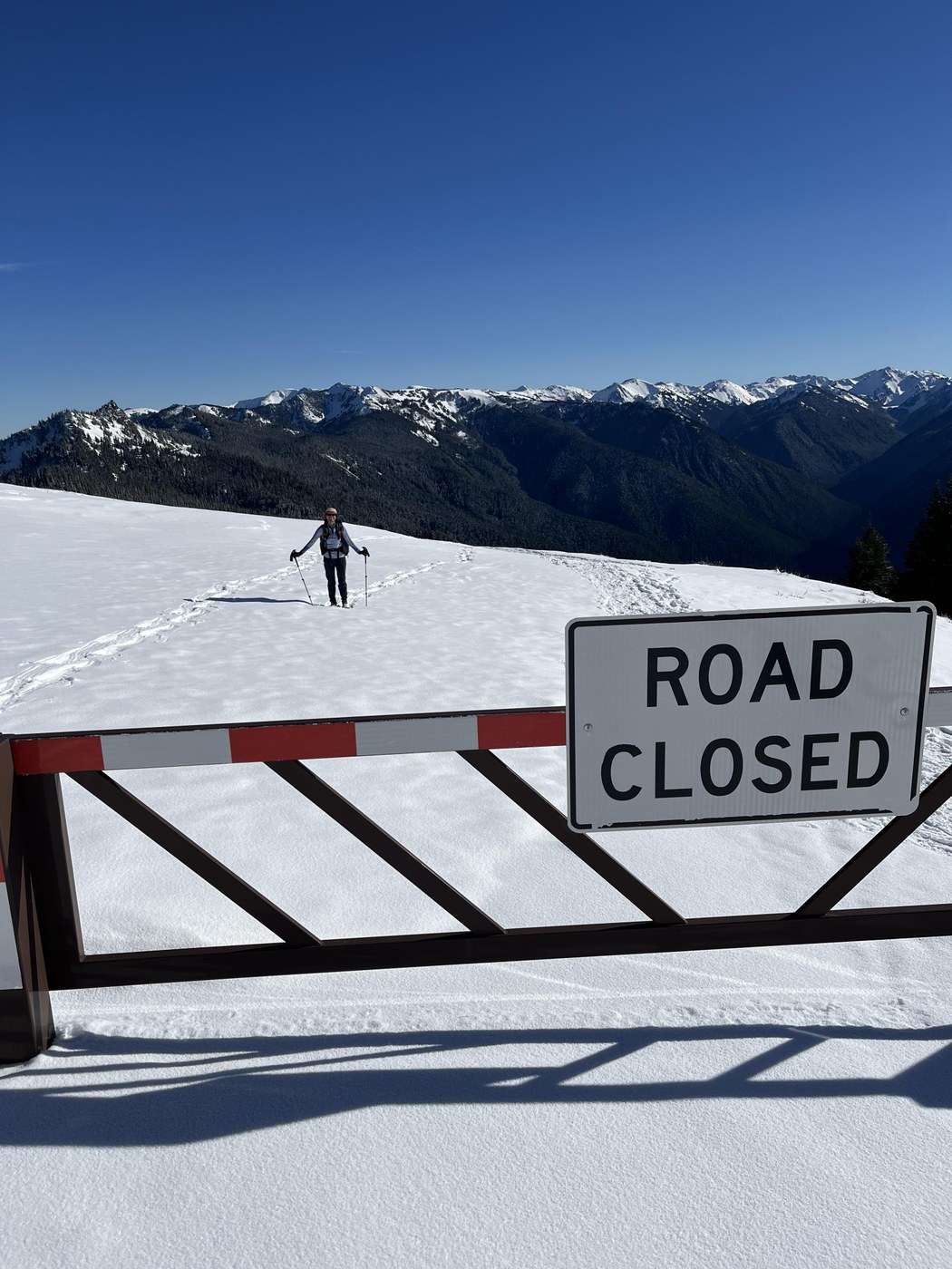 Perfect bluebird day for snowshoeing at Hurricane Ridge. We headed out along Obstruction Point Road, starting at the road closed sign. Snow levels are low enough right now that the WTA alternate route isn’t necessary.