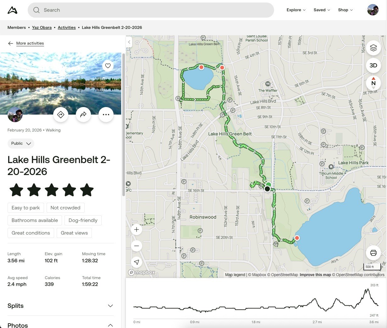 Highest Point: 300 ft (The Bellevue Demonstration Garden)