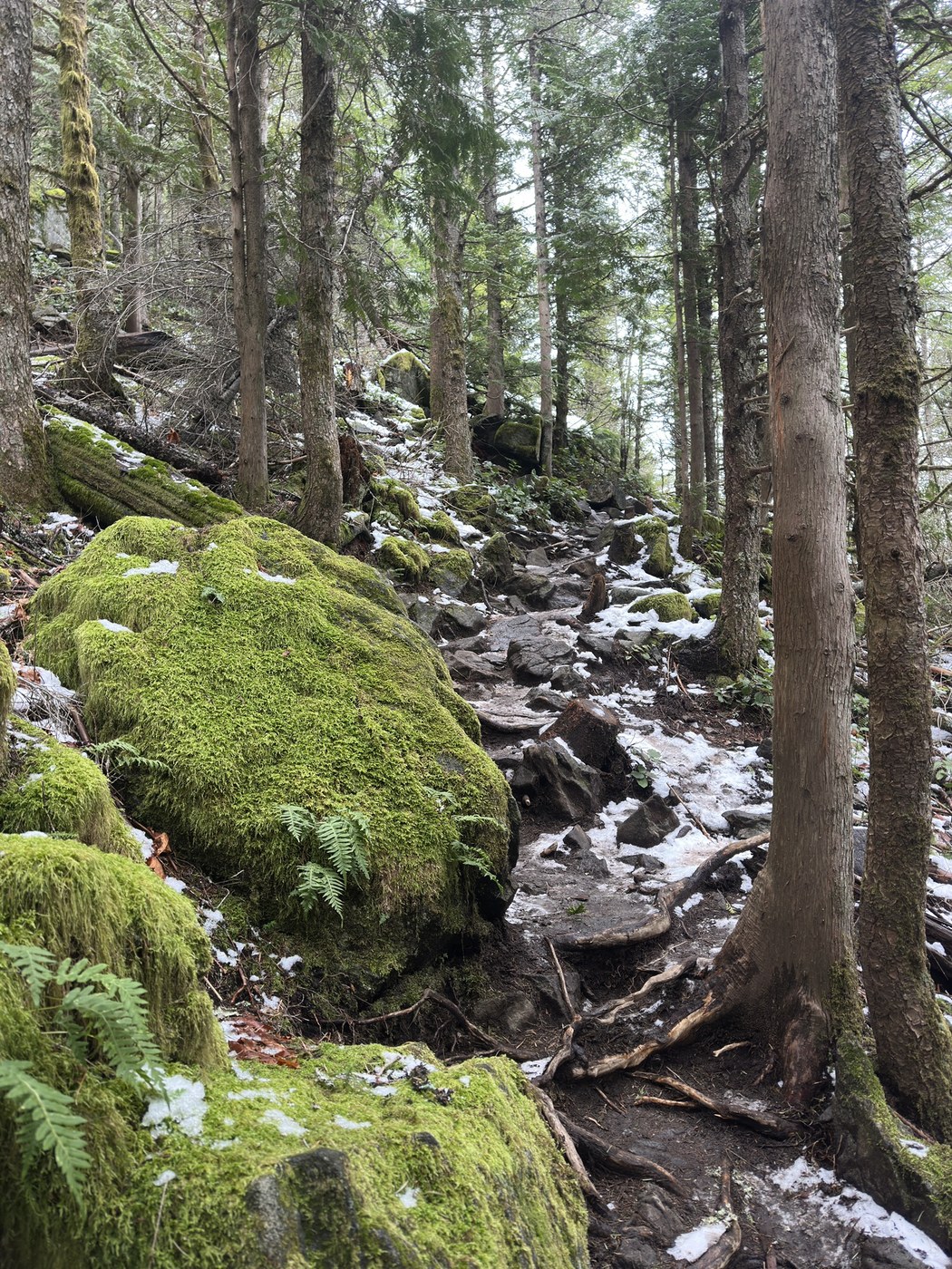 Took a very leisurely stroll to enjoy the icicles, snowy mountaintops and a brief clear view at the balcony. 3h total.