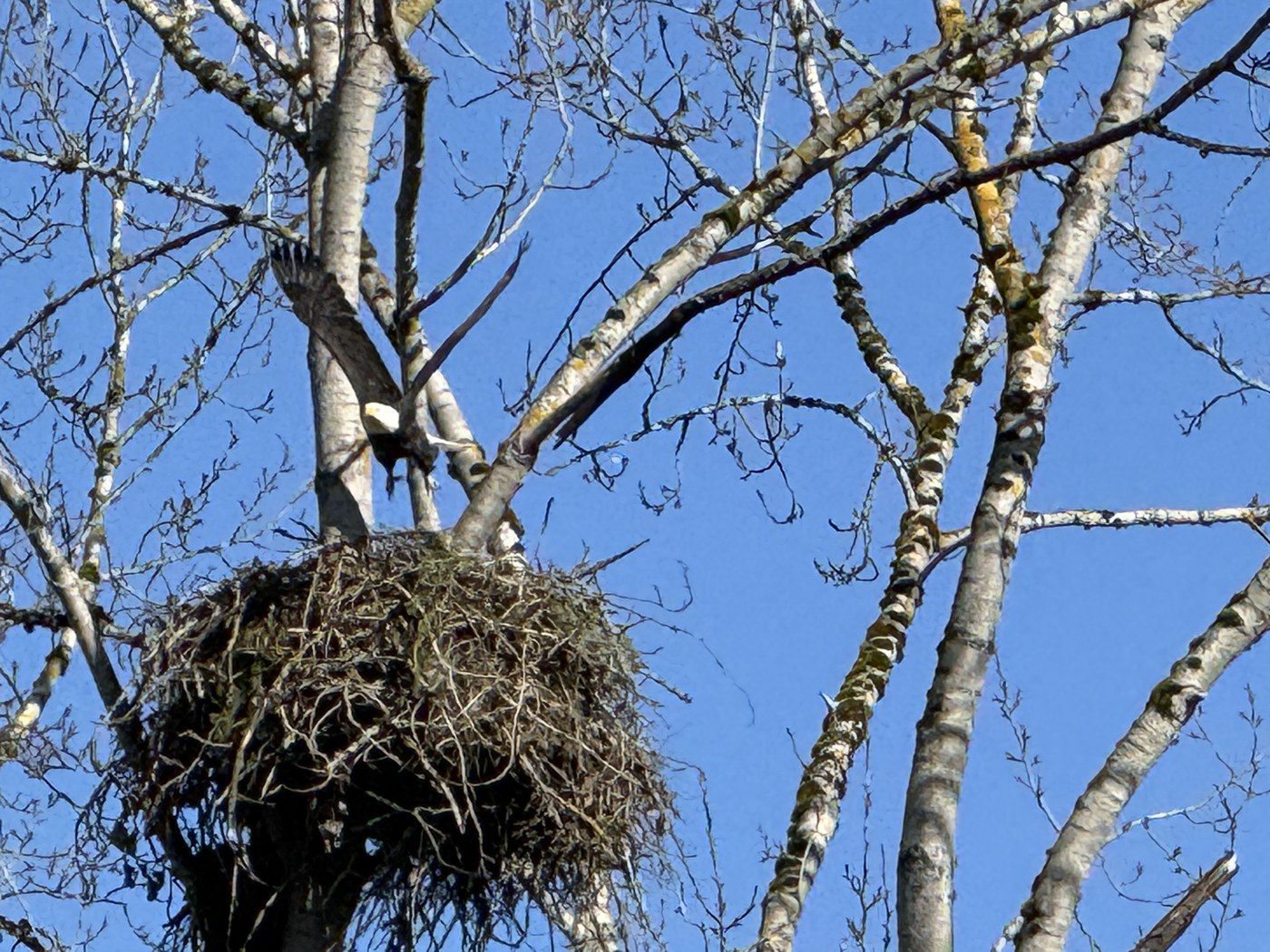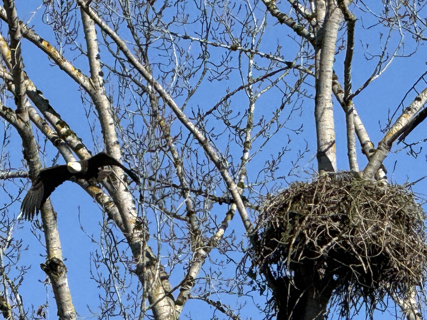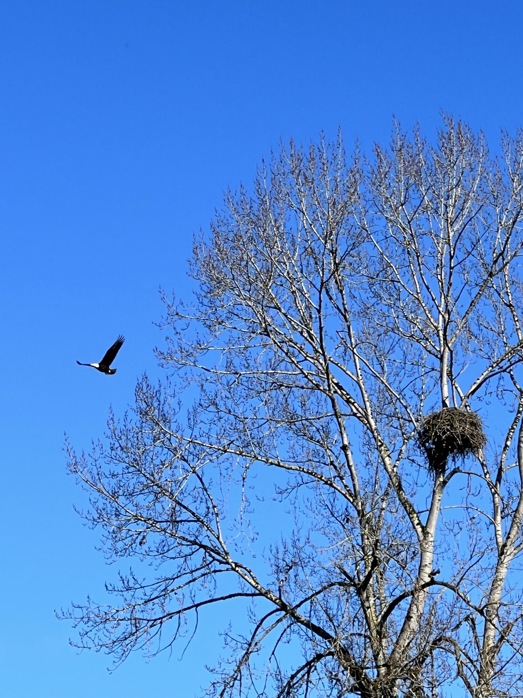 The highlight was the eagle's nest (and eagle) between the parking lot at the softball complex and Klineline Park. We spied the inhabitant leave the nest to spread her wings a bit.