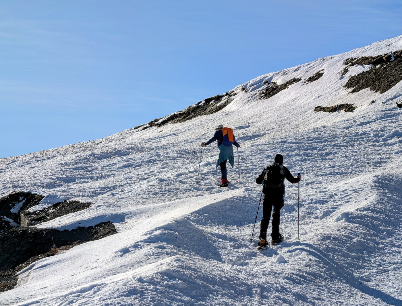 We hiked about 2 miles to a sunny bare spot below Steeple Rock, and had our lunch there before turning back. All in all, it was a glorious day.