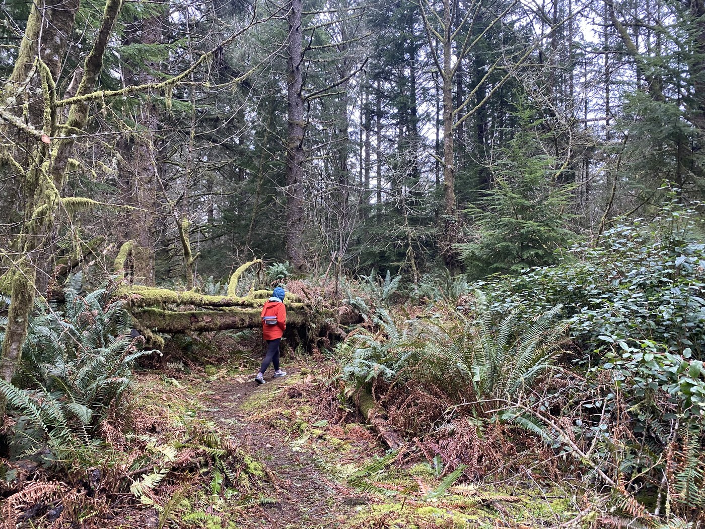 The trails have recently been brushed so there was no getting wet. Lots of big trees, birds singing, and occasional glimpses of waterways and returning fowl.