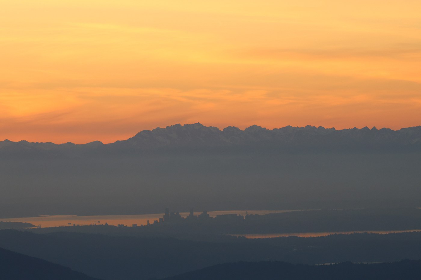 Fun sunset hike up to see the Mailbox and the views, with polarapfel. We made it up to the top just as the sun was beginning to show some color and the moon was out as well. You could even see the Space Needle. We stayed on top for about 30 minutes to take pictures, it was worth lugging up the cameras and lenses. I was glad to have an extra dry shirt because it was noticeably colder at the top. We needed headlamps for most of the hike down. We went down the old trail to save some time and it was a nice to work with gravity instead of against it :)