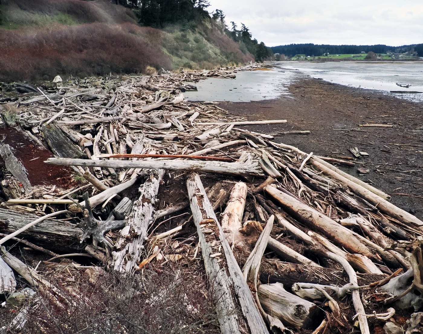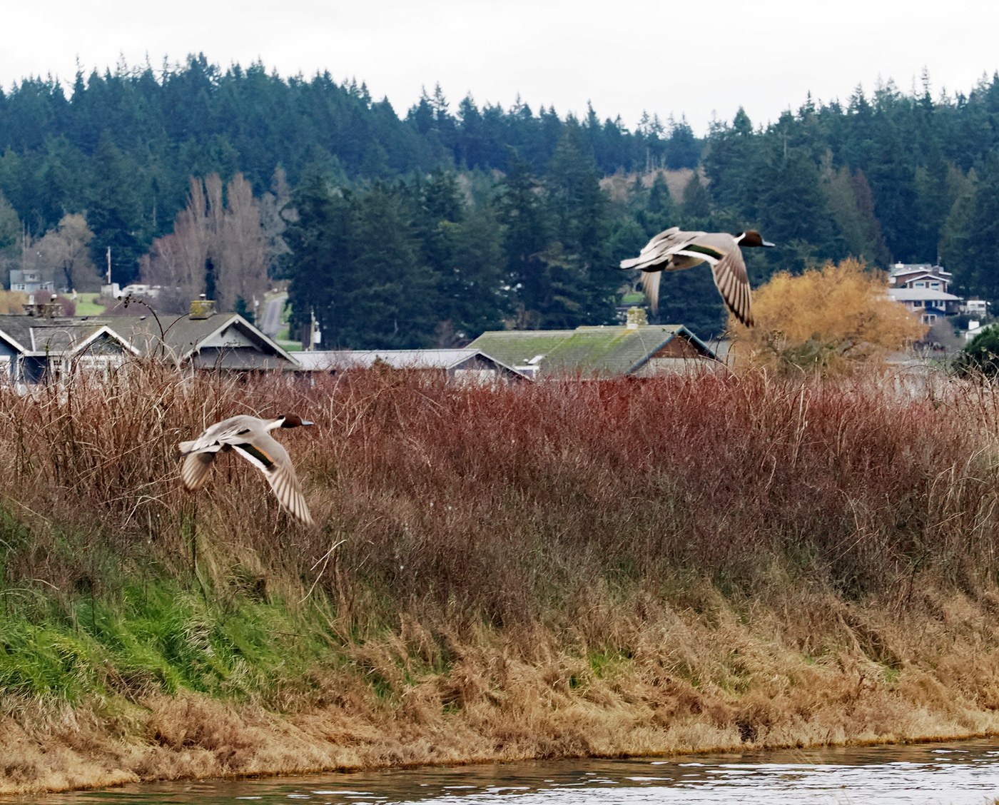 This was an exploratory hike for me. I was looking at the map of Whidbey Island for wetlands beaches and particularly nature areas and came across Deer Lagoon Natural Preserve that nearly shares the shoreline to the east with Double Bluff. The Lagoon is a" National Audubon Registered Important Area" with 211 species of birds recorded here. There is a kiosk at the beginning of the trail with information including an up-to-date list of current birds monthly. This month: sharp-shinned hawk, bufflehead and grebe. I did see the grebes in addition to mallards, Canada geese, red winged blackbirds and northern pintails.