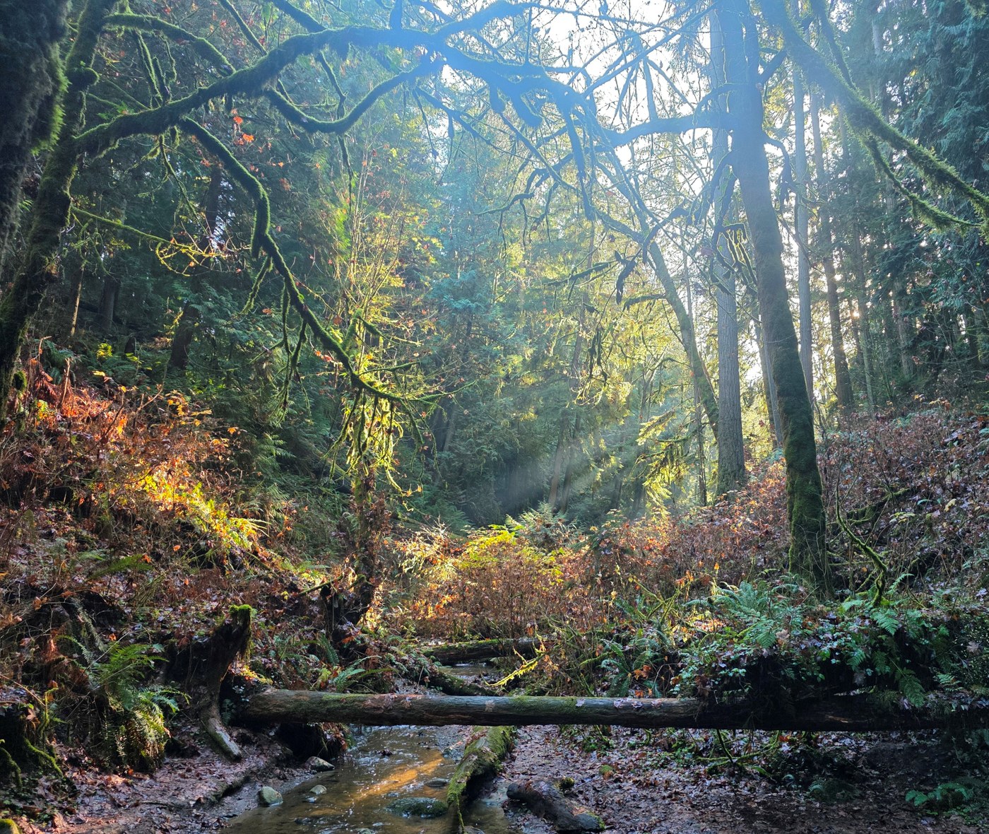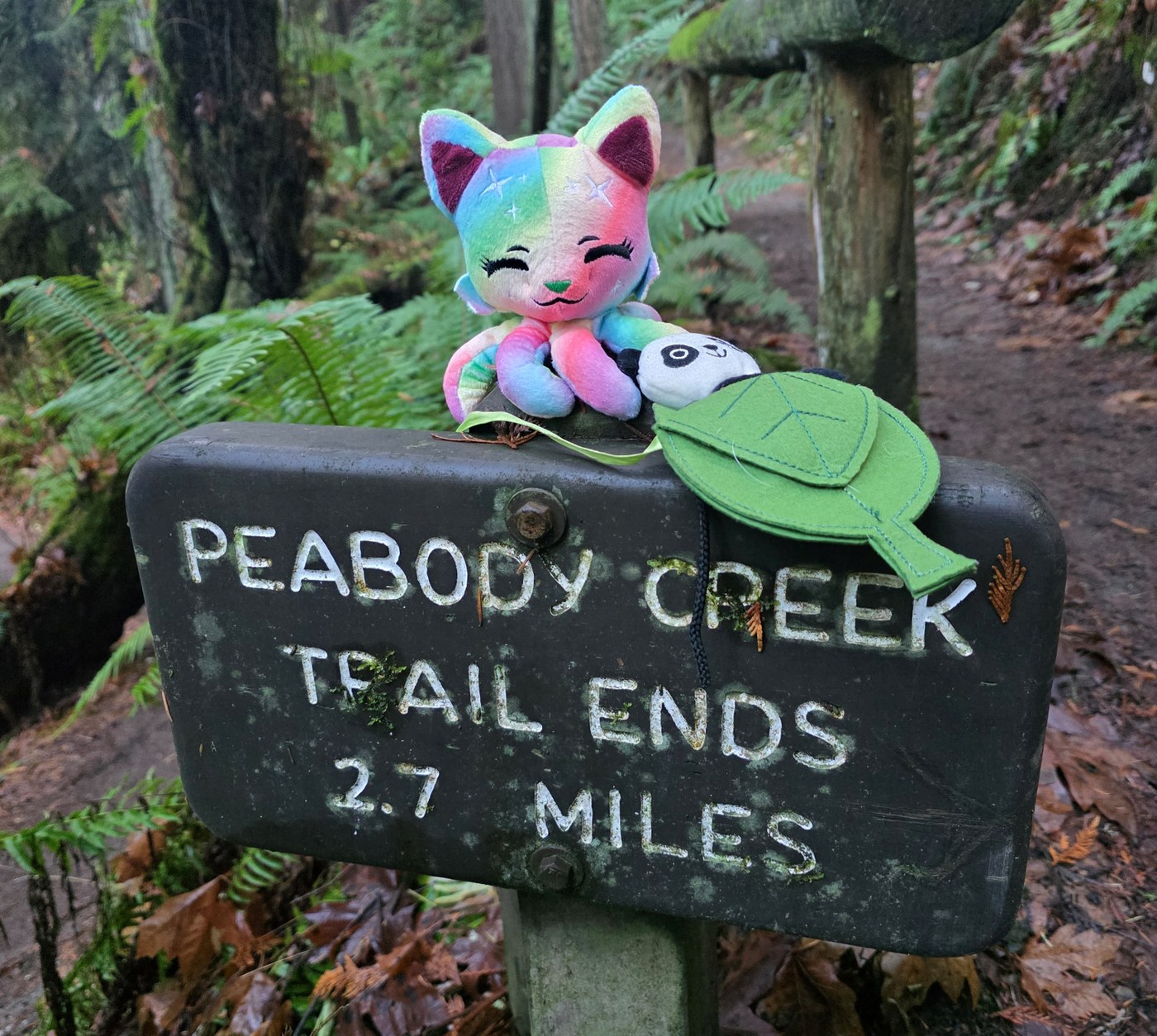 My hiking buddy and I were doing some driving/scouting for our ODT bikepacking trip next year and stopped off at the Peabody creek trail for a change of pace and some time under the trees! Thankfully the rain held off while we followed the creek for a couple miles up to the 800ft topo line. The trail was super slick in spots with plenty of mud and a banana slugs : ) Beautiful little hike with a plethora of ferns, lichens, and bird song!