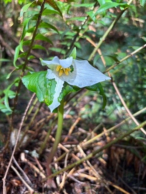 A new to us hike on this beautiful Saturday. We parked at the parking area on 300th street. The blue gate is closed for logging, so we headed south on the trail across the street. You’ll enter a beautiful, mossy forest. We took the left at the junction and crossed a bridge. You’ll hear this creek throughout most of your hike. Salmonberry blooming, Indian plum and we found our first trillium of the season! Song birds and frogs croaking made for a wonderful soundtrack. We followed this trail out a logging road where there is a sign that says “Hazel Brook.” Maybe that’s the trail name or the name of brook? This area is clear cut and would have a great views of the mountains if they weren’t cloudy. We followed this road down to a trail on the left which followed the edge of the clear cut and then onto another road on the clear cut. We took road back to make a loop until we took another logging road before another gate. This road took us to Sandy’s Trail. Which is very muddy but back to the beautiful mossy forest. 3 mile loop in total. I’d highly recommend a map and have navigation/map reading skills. There were plenty of junctions that we could have taken to other places but since it was our first time here, we just wanted to check it out.
