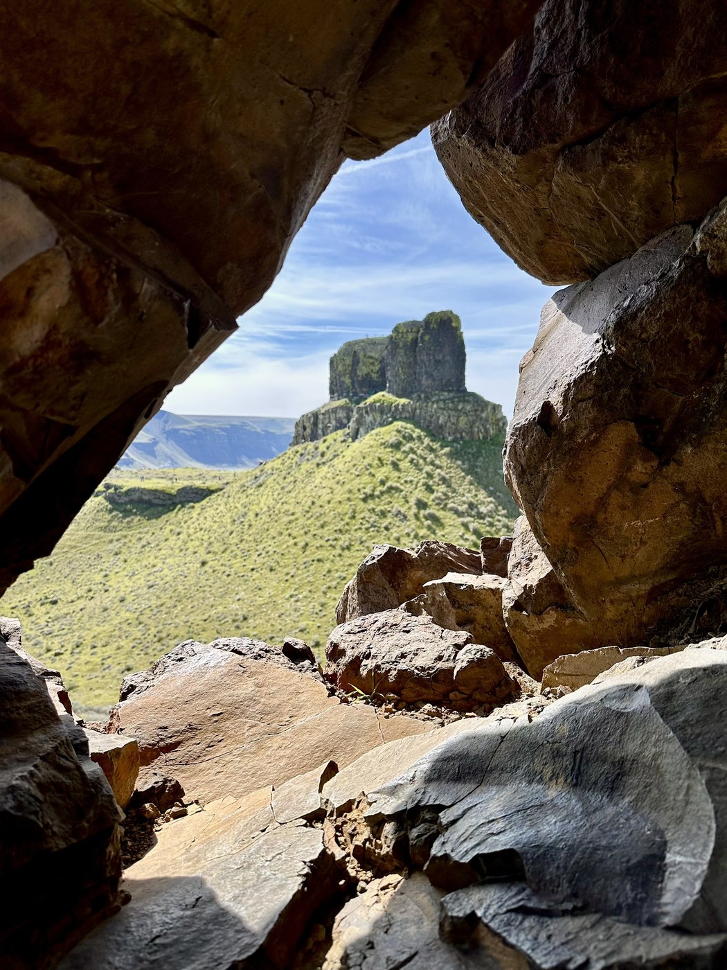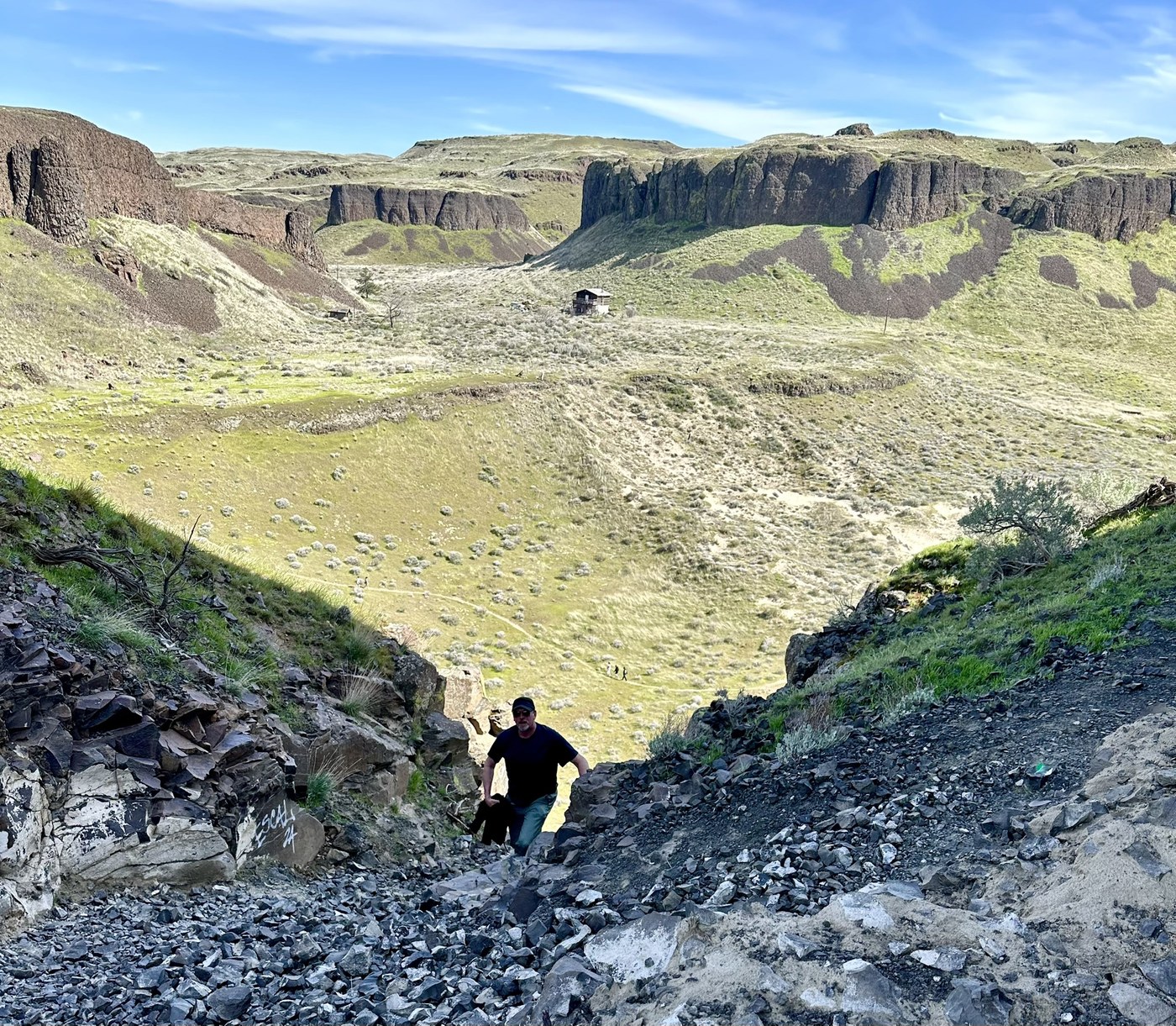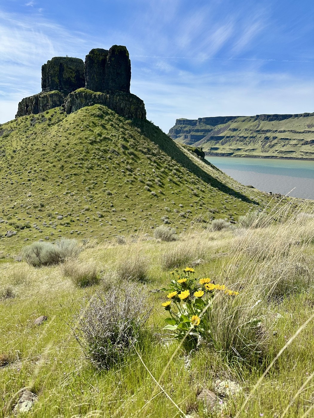 It’s a perfect time to hike in this area. The weather was sunny yet cool, balsamroot has just burst with yellow flowers, and the rattlersnakes are still underground.