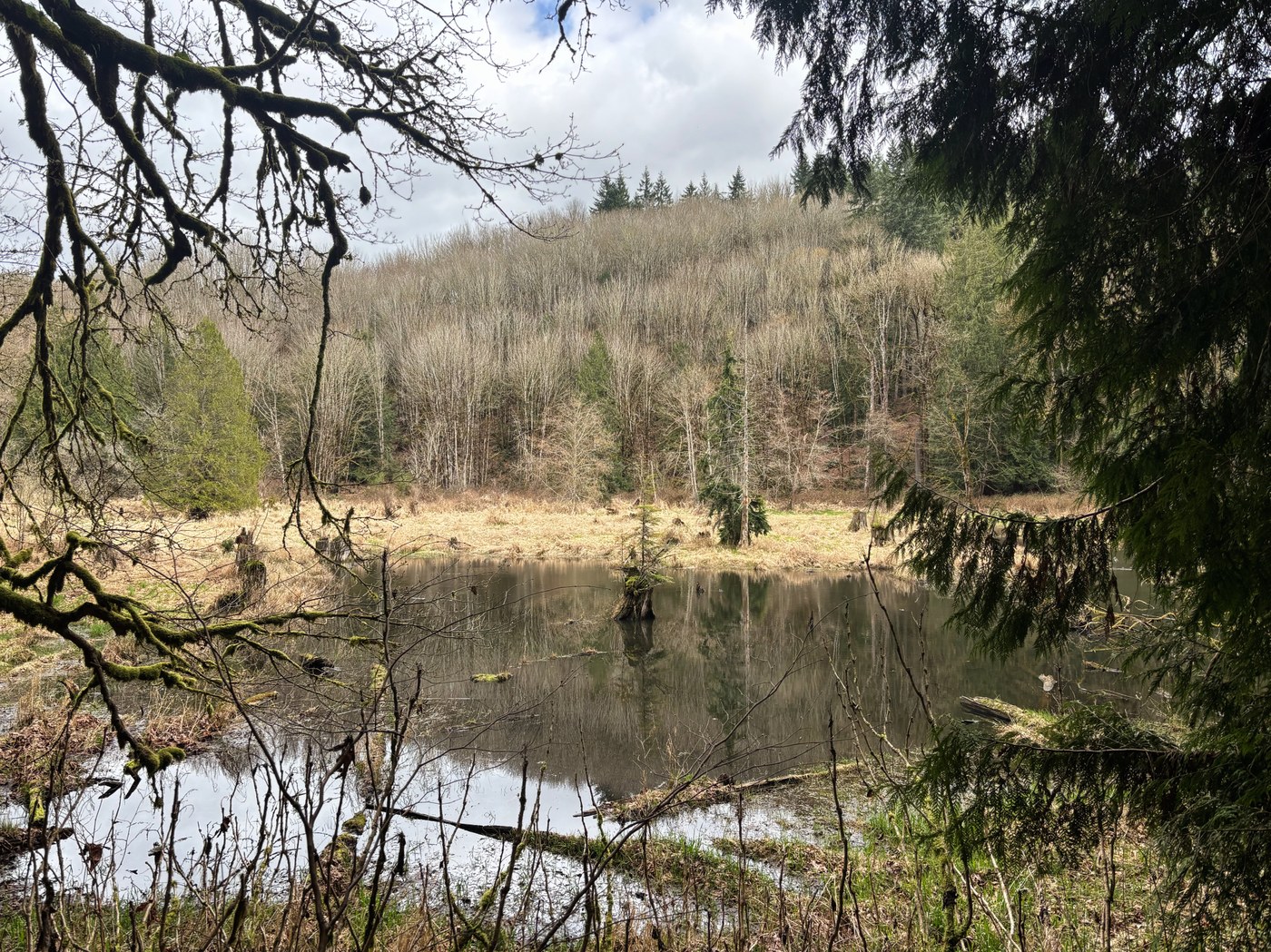 I’d been here last winter on an icy day, and found it gorgeous. Melted, it was less so, but still a good place for the kid to burn some energy. Starting at the north lot, there were many minor uphills and downhills before we made it to Beaver Lodge Pond and then the River Viewpoint. We took a peek at the beginning of a small riverside trail, but it had clearly been underwater until very recently, and was still nearly level with the swollen river, so we headed back uphill.