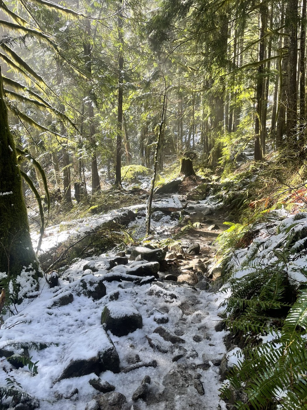 A beautiful spring day for a hike! I meant to go to Lake Serene, but it was slow going on the slippery slushy trail, so I didn’t have enough time. Also, my feet were SOAKED - turns out water running into waterproof boots from the top bypasses the waterproofing. There is a section of trail where you just have to wade, and I guess I hit some deeper spots.