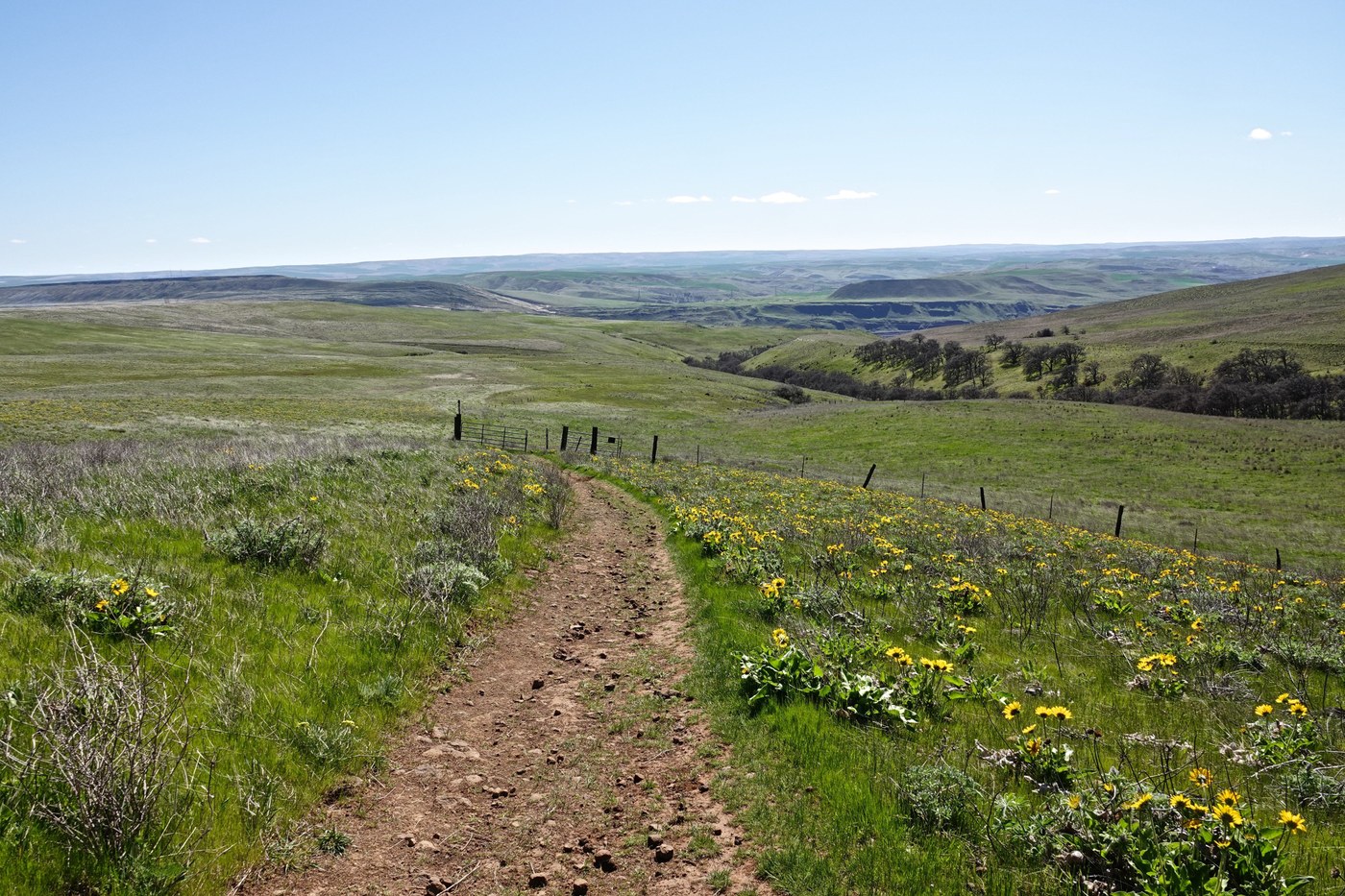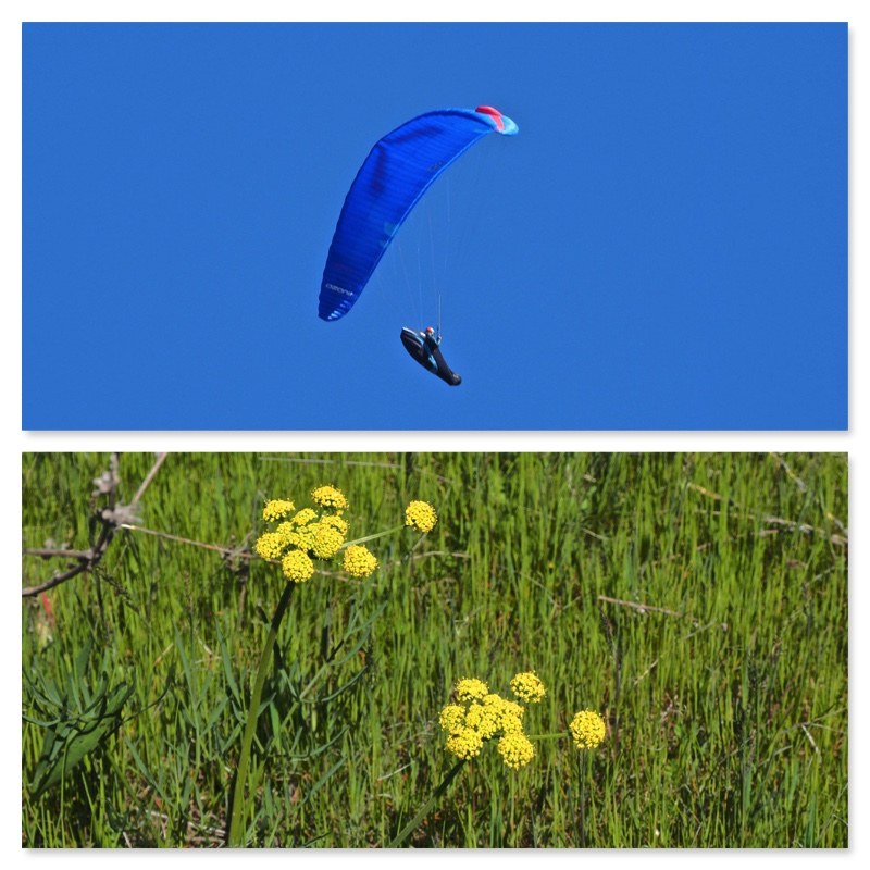 On this beautiful and windless day in the high 50’s we meandered less than 2 miles on the Eightmile Creek Trail and Ranch Trail to check out the bloom in the area. The lupine bouquets were mostly just buds. There were several bouquets of balsamroot blooming and nine stem desert parsley were starting! I think it will be 2-3 weeks before peak bloom for the area! Meadowlarks were heard, but none came close enough to get a picture! A highlight was watching a parasailer! We talked to hikers who had started at the Crawford Oaks TH and they told us there were more wildflowers blooming ln the lower trail suction.