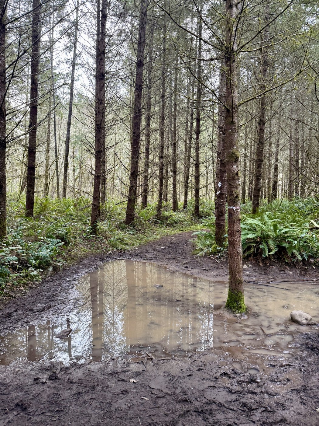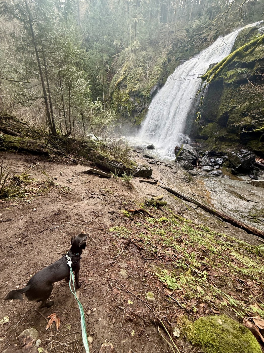 I grabbed Benny the dog and we left the house at 7:00am this morning to go scout Little Mashel Falls before I lead a hike there next week. There were multiple other cars in the lot when we arrived, but only only saw two people coming back from the falls on our hike in. The Bud Blancher Trail was in great shape and only had some muddy/wet spots when you got closer to the trail up to the falls. The Little Mashel Falls Trail, on the other hand, was very muddy, especially at a junction with another off-shoot trail that takes you to the river. We got turned around at that point and took the off-shoot, but after checking the map got back on track.