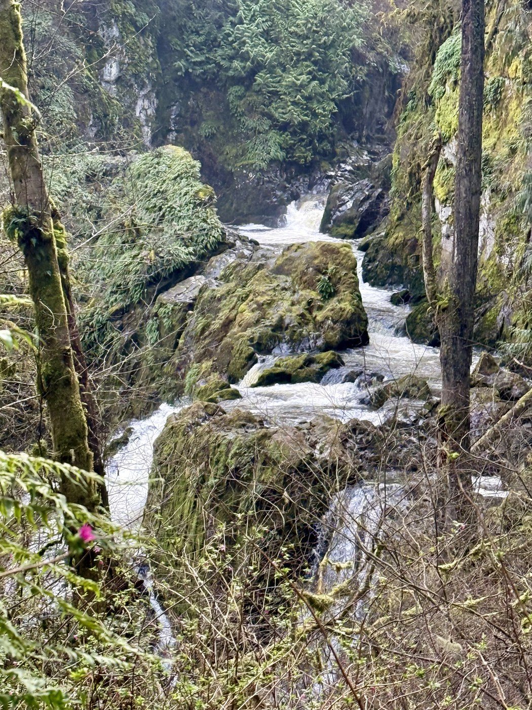 The word of the day is: Muddy! The last time I hiked it was in July 2024 and what a difference it makes to come in the Spring! The lower and middle falls were raging compared to then.