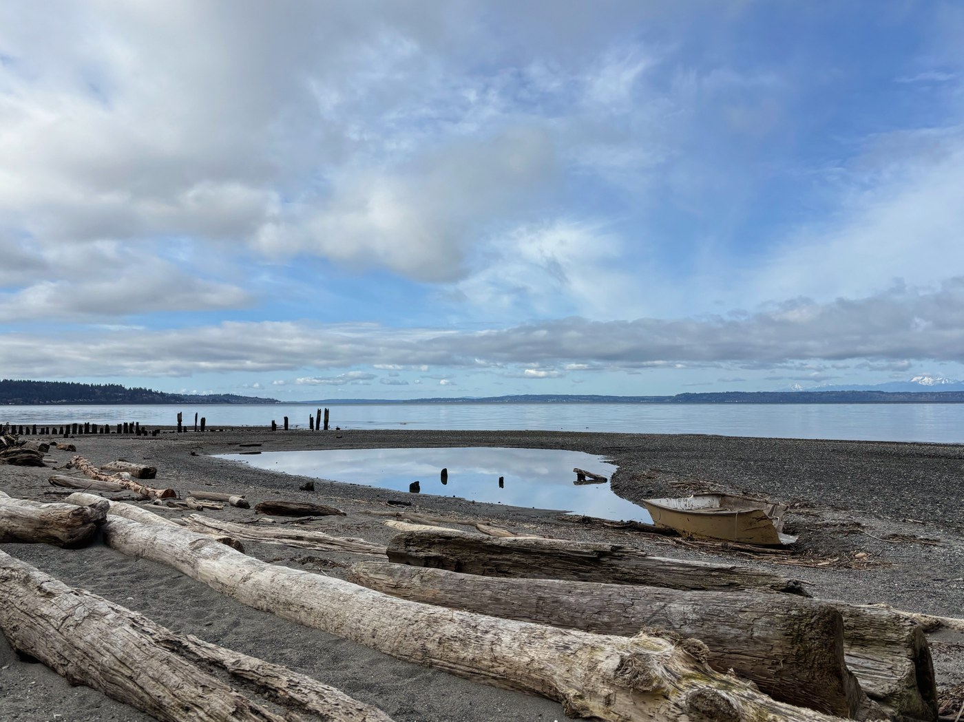 Picnic Point reminds me a lot of Carkeek Park: a wastewater treatment plant about half a mile up the road, then a salmon stream leading down to the sound, which you reach by crossing a bridge over the railroad tracks.