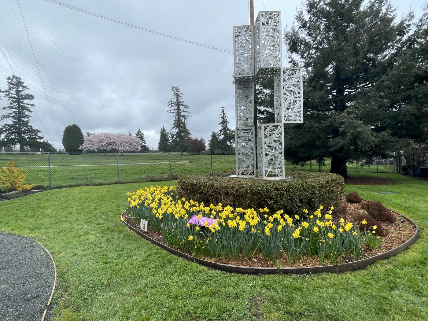 This is a small arboretum that has some descriptive signs about the plants there and a few sculptures.