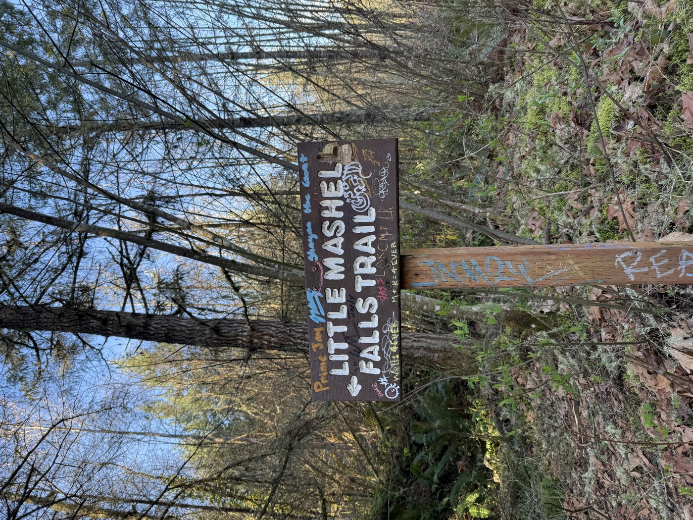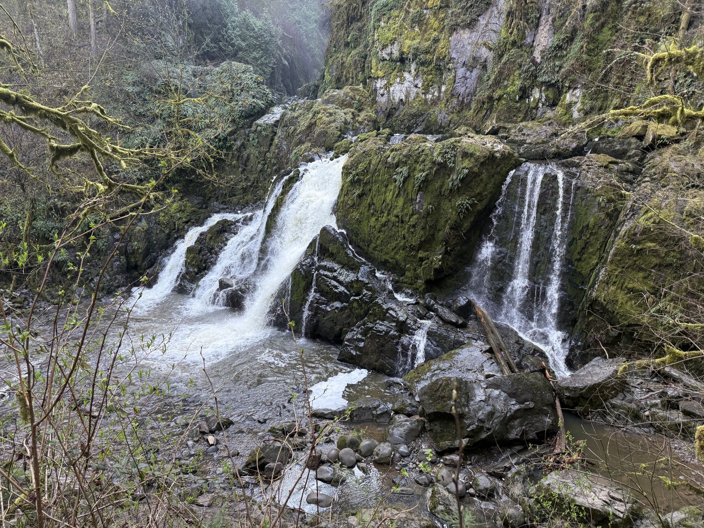As soon as we made the turn onto the Little Mashel Falls Trail, the mud began. The trail got more rocky and roots at this point as well. We hiked to the Lower Falls first, which required a bit of foot finding in the mud on the steep downhill. We stopped short of going to the bottom of the falls since the trail was getting thick mud and very slippery. It was still a beautiful view! It was much easier to go back up the trail than it was coming down.