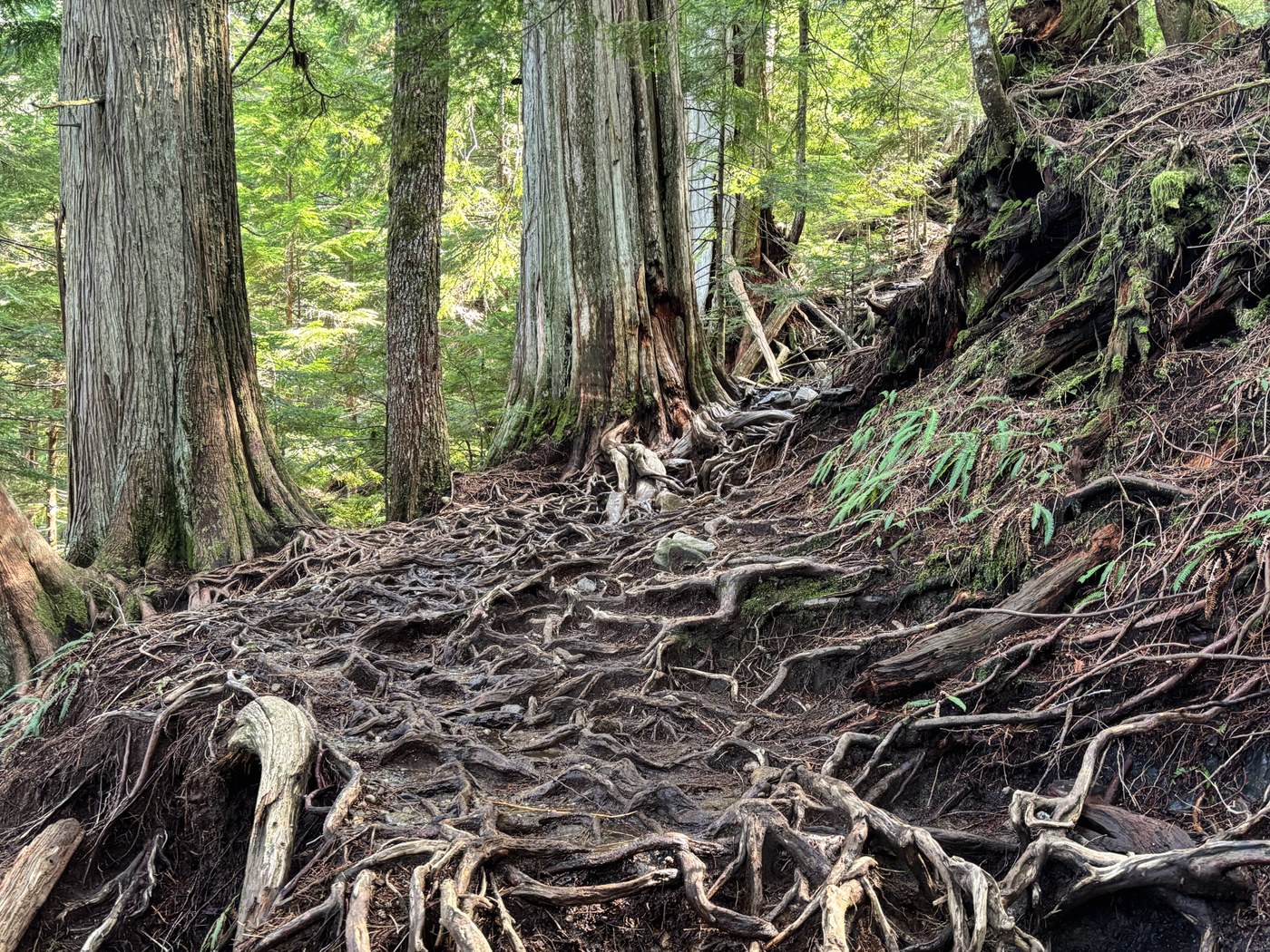 I used to hike both lakes back in my younger years and the roots and rocks never bothered me. Now at 70+ they bother me a lot, both going up and coming down. I don't hike here much anymore, too overrun now.