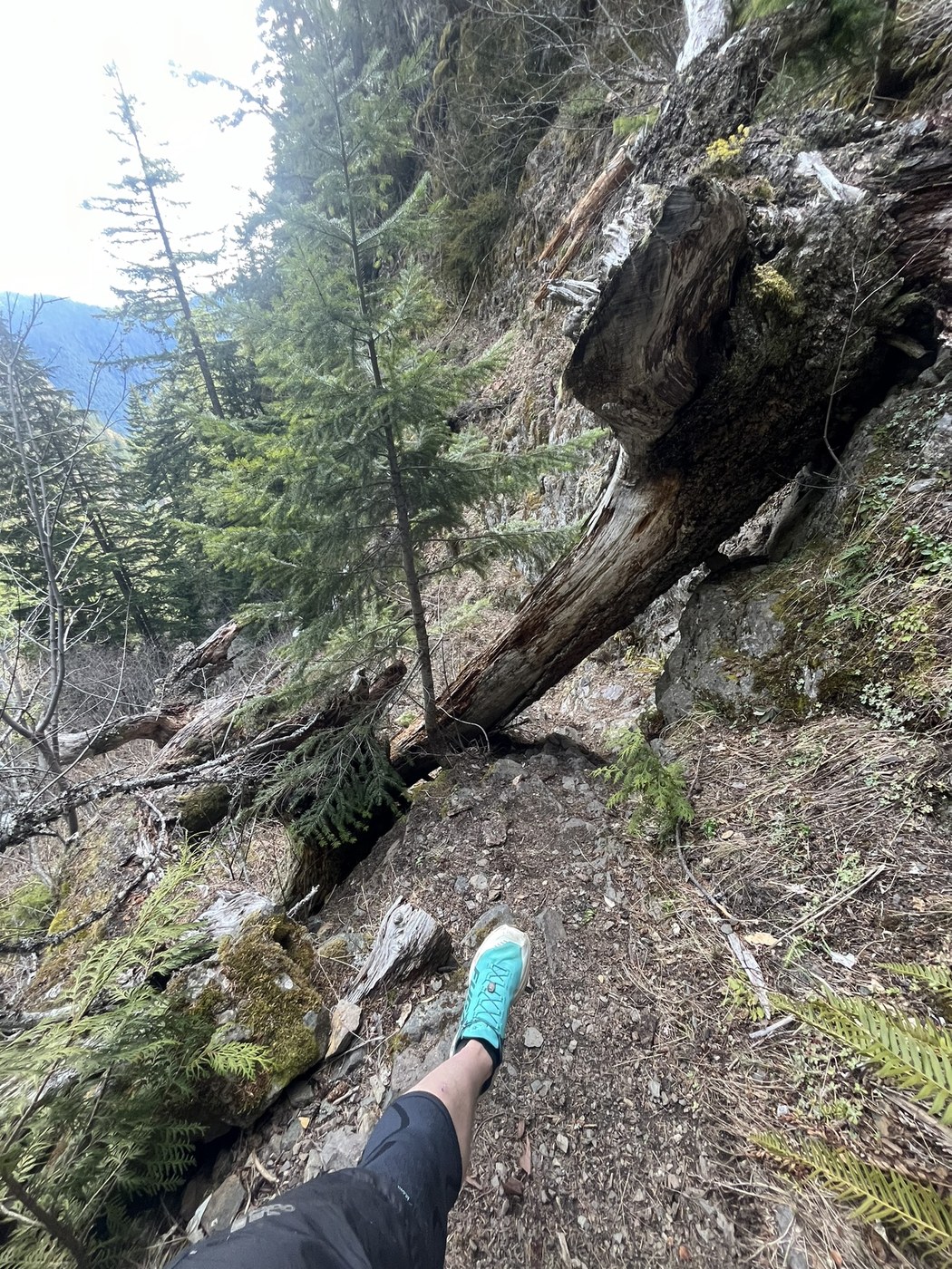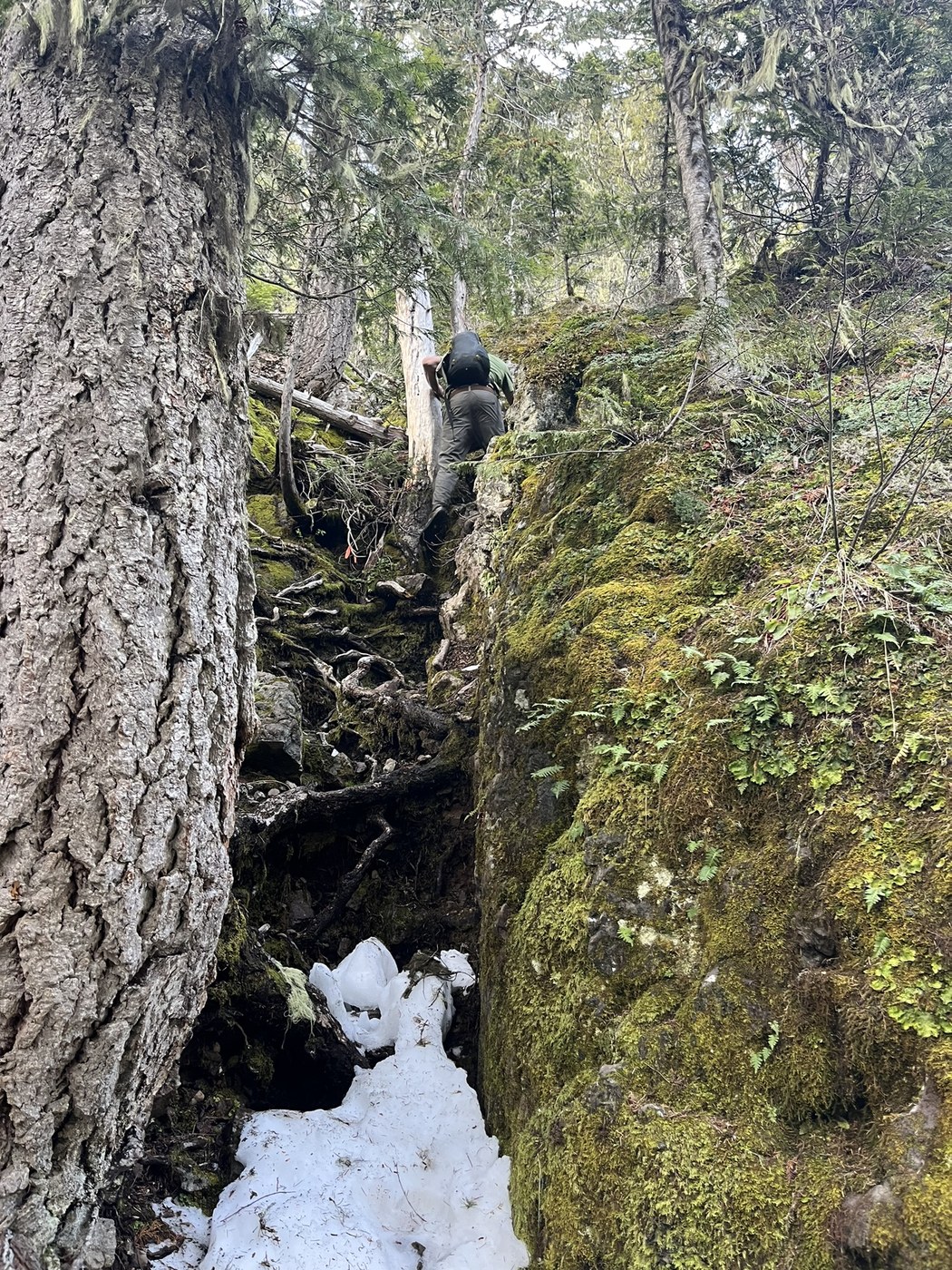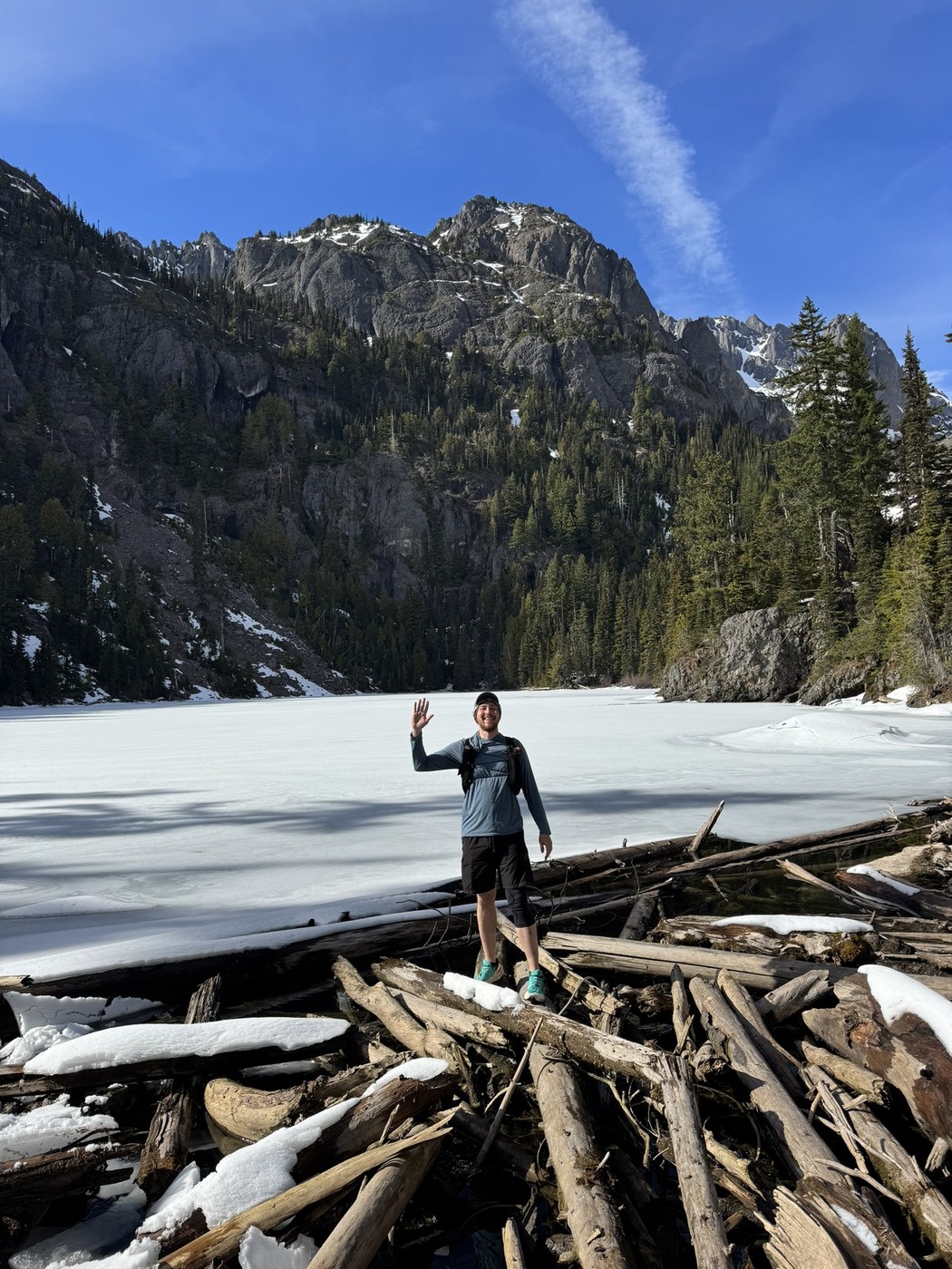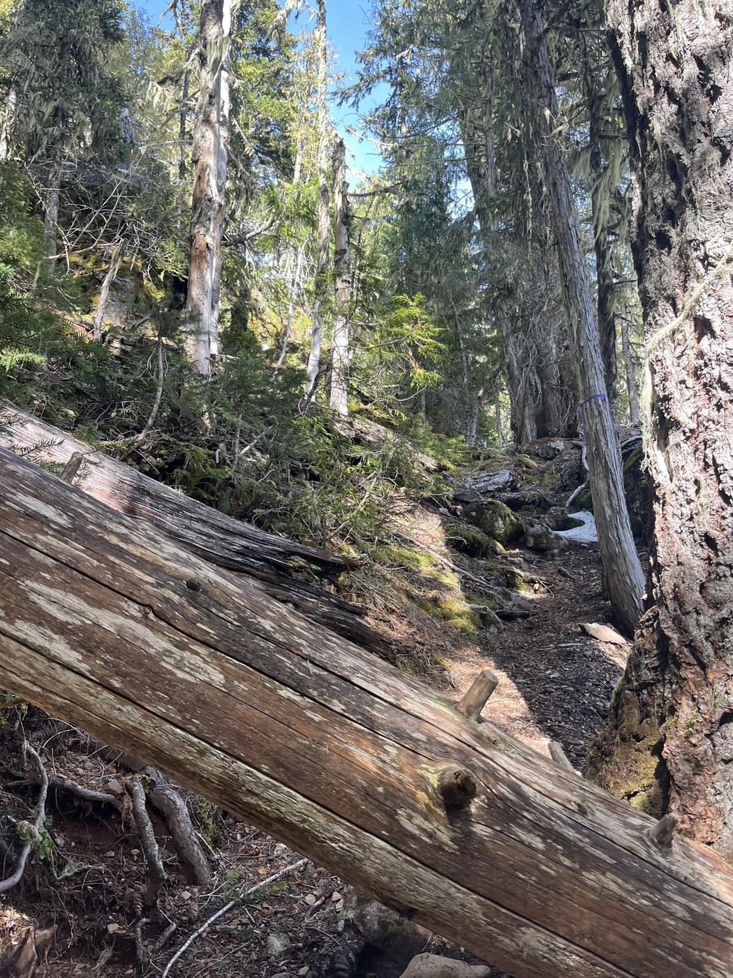 Beautiful day out enjoying suffering on the trail. Biked the first 4.5 miles to the start of the trail. It starts out steep and some trail finding is needed but recent purple tape and some red/orange markers on the trees will guide you to the lake. Some snow/ice near the top but will be melted in about a week or so. Over very fun hike that will give you a good workout. Reason it’s a hard hike and someone told me it’s a death march lol