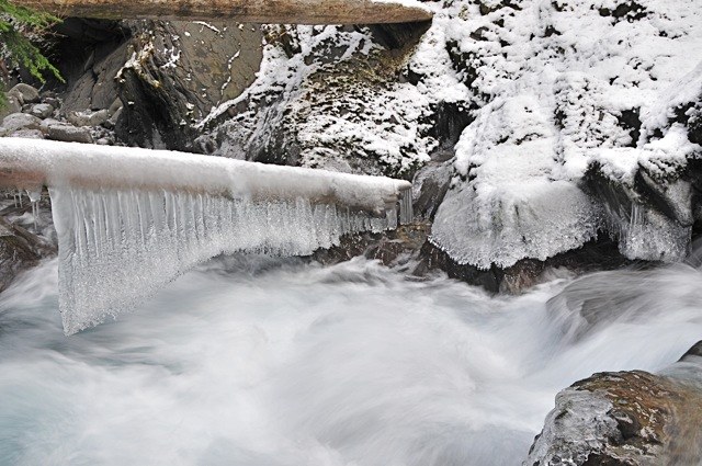There was very little snow on the road to the TH except for areas which receive little or no sun and these are probably doable by any car with good tires although we did have our truck in 4WD. There is very little snow on the trail. We hiked a mile to the Royal Basin Trail and walked about 1/4 mile on it. The River and Royal Creek were beautiful with several beautiful ice formations. If time had allowed, we would have gone farther on the Royal Basin Trail which also had very little snow.