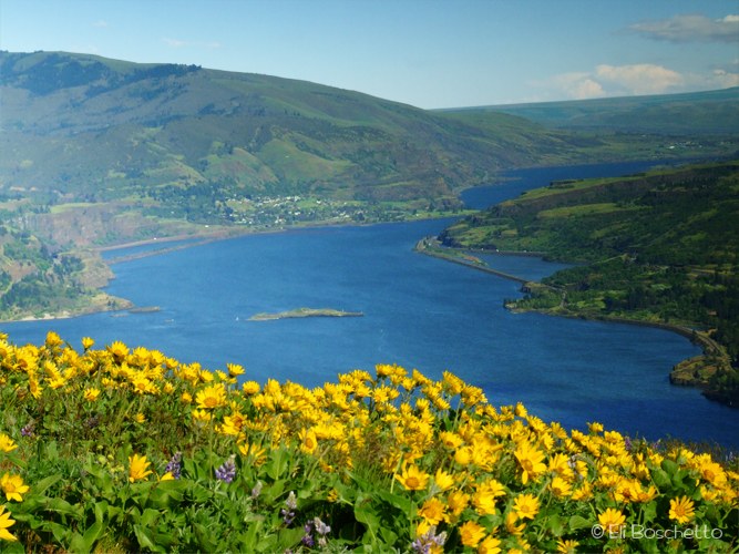 Emerging onto the top of Coyote Wall offered huge views of Columbia River Gorge east and west, and across to Mt. Hood. Carpets of balsamroot everywhere; lupine on top just emerging, but a little lower down very prolific. Trails all in good shape, but lots of junctions in this area, known as "the labyrinth;" kept to edge of wall most of the way down; sheer drops - use caution. Beautiful hike. Added to our "faves" list.