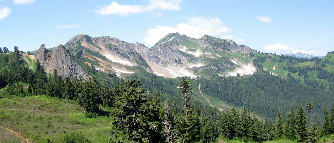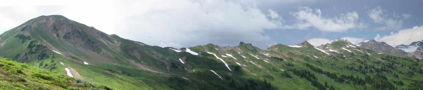 There's a reason I've done this 2-3 times. A favorite. Thanks to the road and trail crews. This hike circumambulates the entire headwaters of the N. Fork Sauk, off the Mtn. Loop Hwy. Why merely "hike" when you can "circumambulate"? Two 15 mile days make a fine weekend loop, but it can soak up a lot more time than that. It features some low-level old-growth hiking in the N. Fk. Sauk, but it's mostly wide-open ridge hiking above timberline in vast subalpine meadows with stunning views and 1 insect per flower. I recommend midsummer with water still available and wildflowers peaking, i.e., mid July, but anytime with clear visibility will be excellent. It would be a shame to do this trip with impaired views. DEET. Can be very dry in late season.