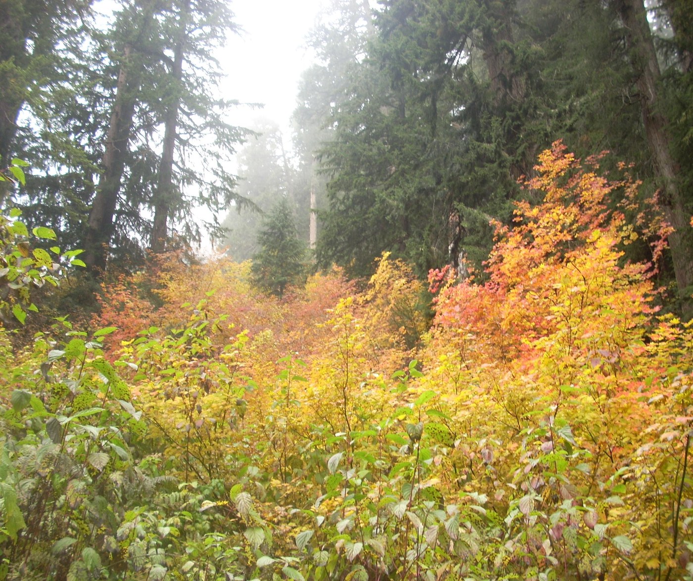 As we set out on our hike it was gloomy with a light mist that stuck with us for most of the trip in. The trail is still clear and well defined after the first couple rounds of rain we've had. However, the trail has become slick and muddy very quickly in alot of places. Rocks and roots posed slipping and tripping hazards so be careful. With the hazards though came beauty that could only be found deep in the forest. Old growth trees were everywhere and fall colors were out in full force. Moss blanketed just about everything. We saw all different kinds of mushrooms and fungus the whole way up the trail. There were also a nice couple spots to stop and admire the river that was flowing fast with th recent rains.