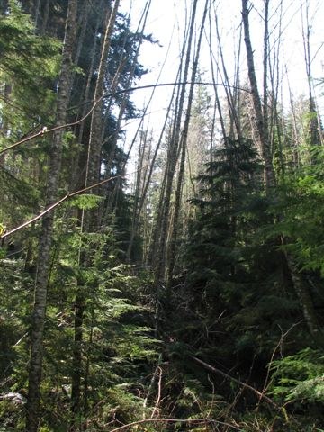 We encounted some blowdowns, it looked like some had been cut back, but not all. It was quite muddy in several spots. We didn't get stuck, but we did have muddy boots. The mosquitos were starting to come out.