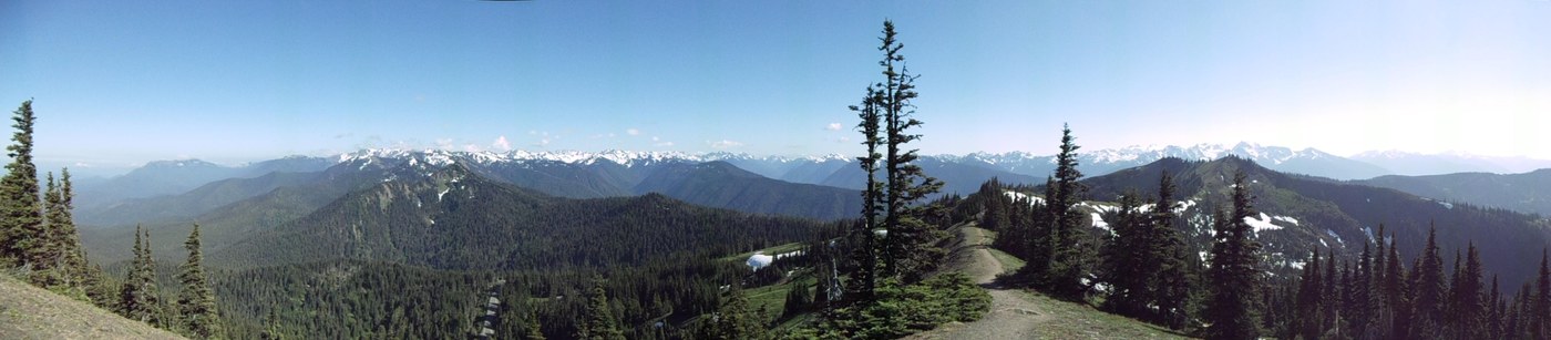 I started out at the Hurricane Ridge Visitors Center. You can also get to Klahhane Ridge via the switchback trail a few miles before the Visitors Center. Taking the Switchback Trail propels you up an endless series of switchbacks, straight to Klahhane Ridge. This may seem like the sensible thing to do...get to your destination as quickly as possible...right? Wrong. For one thing, you miss out on the spectaular area surrounding the Visitors Center (yes, there are huge crowds, but you'll get to savor their looks of envy when you turn away from the "superhighway" trail and leave them behind as you drop off toward more rugged and wild land). More importantly, taking the Switchback Trail means that you miss out on 2.5 miles of blissful ridge-top rambling along Sunrise Ridge. So, take your pick: merciless switchbacks or hiking valhalla.