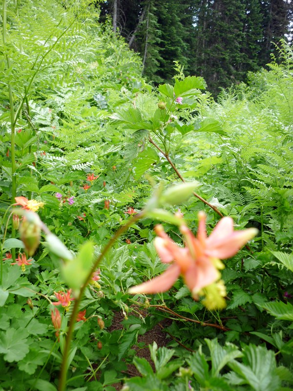 The trail in was good. Climbs steadily the whole way through fragrant meadows, breathing forests, and over snowmelt. We encountered a few blowdowns; though none was major. The dogs got under/over all of them just fine. The trail was overgrown with soft vegetation in spots (which from my experience is standard for this trail). Plenty of snowmelt water all along the route. No major washouts. Plenty of bear poop right in the trail, but no bears.