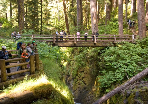 Sol Duc Falls was nice. The water drops into a chasm far below. This could be dangerous, but the National Park Service has installed fences just about everywhere. We held our toddler's hand firmly, but never really worried that she would tumble over the edge.