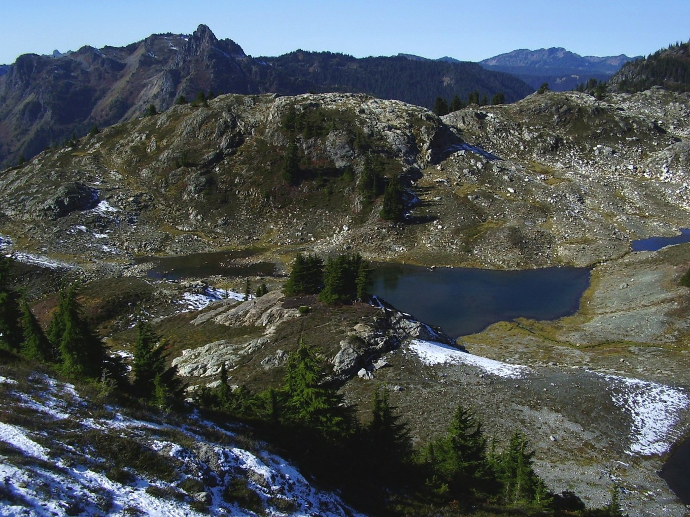 Dean met me in Burlington and we headed up to Highway 542 on a beautiful crisp fall day to hike to Yellow Aster Butte. The trail is muddy in a few places especially after the morning thaw but overall still in good shape. There had been a dusting of new snow in the higher elevations and some of the smaller tarns had a thin coat of ice which was mostly gone by afternoon. The fall colors are on the fade but it was still beautiful.