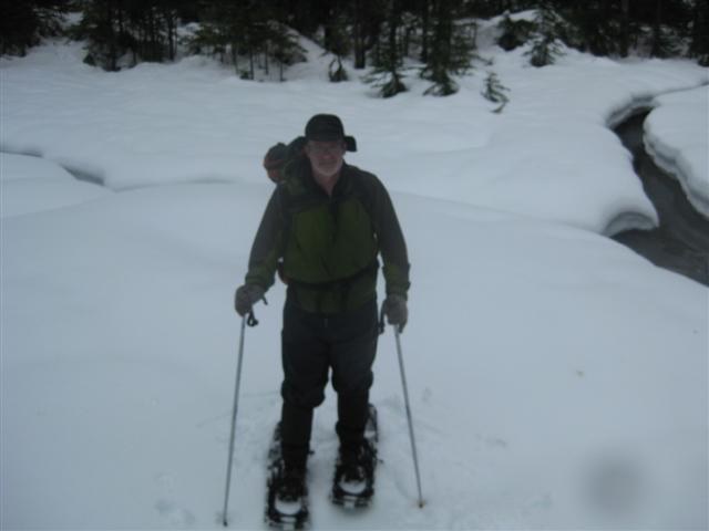 We made it up the road about 1 1/2 miles before the trailhead until the snow made us pull over and park (a vehicle with traction devices could make it all the way). There were only about 2 1/2 inches of snow on the road, so our snowshoes stayed strapped to our packs until we were a mile past the trailhead.