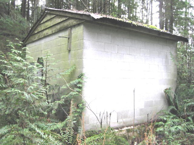 Formerly owned by the Bullitt family (KING 5 broadcasting), the mountain was donated to the State of Washington in 1972, but there still remain traces of the family's home and business. The famous stone fireplace and chimney are all that are left of the home. Atop west peak, are the ruins of the so-called Greenhouse. Last year it was still standing, full of large batteries, and an antenna which climbed up a tree. All that is flattened now and the batteries are no more. Further on Chybinski Loop is an old blockhouse off to the north side of the trail. Today a modern complex of radio and microwave towers dominates the central peak and highest point on the mountain.
