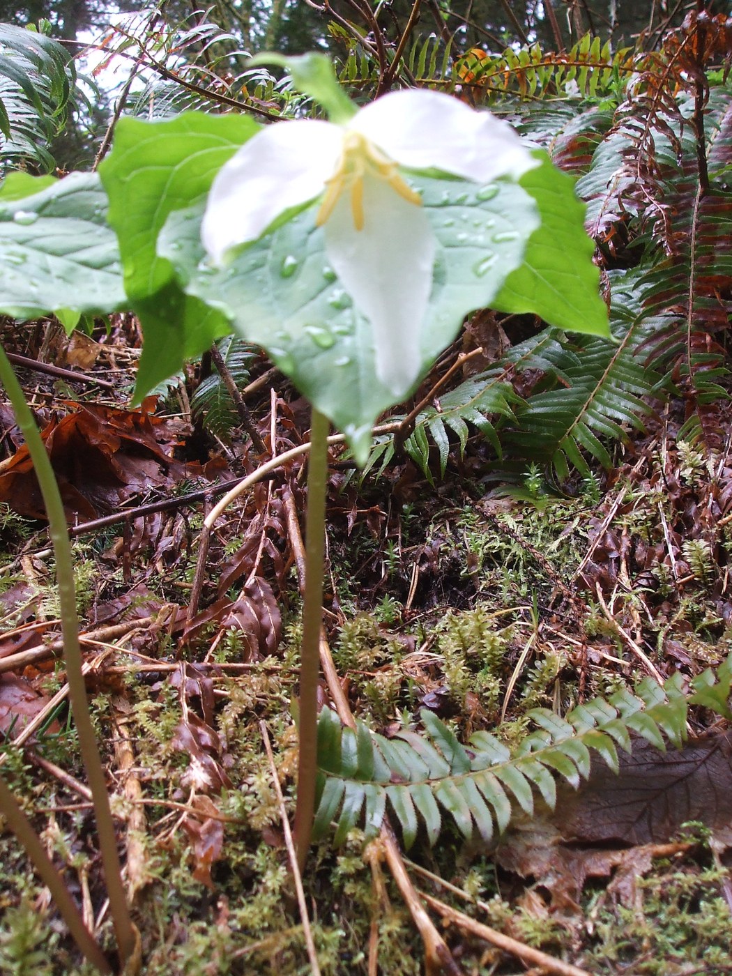 We were the only people on the trail today....aside from the resident dogs that seem to be a permanent fixture on the trail. They hung around and waited for us to finish lunch and then came and cleaned up the crumbs when we left. One dog named Gracie followed us for most of the trail - and would not stop. She is a golden retriever and very sweet, but followed us all the way out to SR 530 and we were worried she was going to get hit. She had tags on and we called her owner and he came and picked her up.