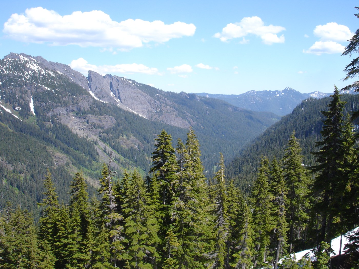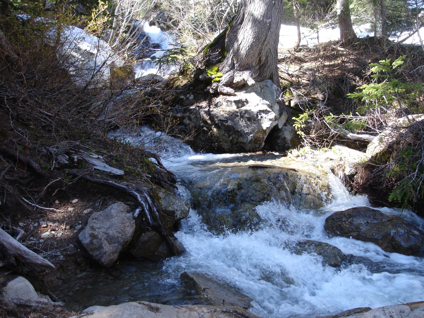 Then, the mile from hell began. The trail was snow free for a while but again fallen trees and debris made the trail difficult to find. Then about half way up the "Mile From Hell" the trail became completely covered with snow. You could not locate the trail anywhere, save for a few patches spread out over 1 mile. The only reason we continued on off the trail was because I had a map, compass. GPS is useless in the forest valley unless you happen to have a satellite directly above you at the time. We made it to Rachel Lake at around 3pm for lunch and it was completely covered with snow still, except where the lake meets the outlet stream. Going back was challenging but we made it out by 6pm. I would not recommend anyone try this hike for at least the next month, to let the snow pack melt, unless you are experienced with a map and compass. You will lose the trail for significant portions of this hike and have to be able to navigate without it. If you are able to though, it's worth the work for the views.