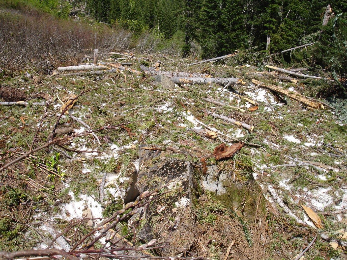 Wow! A beautiful day to hike today with temperatures in the 70's and sunny, although it felt much hotter than that in the lower elevations. Started at the trailhead at 10:30am. Trail conditions were perfect until one mile in. Patches of snow covered the trail and we lost the trail in some spots but headed parallel to the river and relocated it after a short time. I postholed about 6-7 times in places where the snow cover had a hollow spot below. Bring waterproof boots + gaiters or an extra pair. From about the 1 mile mark to the 3rd mile mark various parts of the trail were covered with either fallen trees or tree debris. One section of trees got completed flattened by an avalanche. Lots of snow berms to scale. The trail was not visible for about half the time.