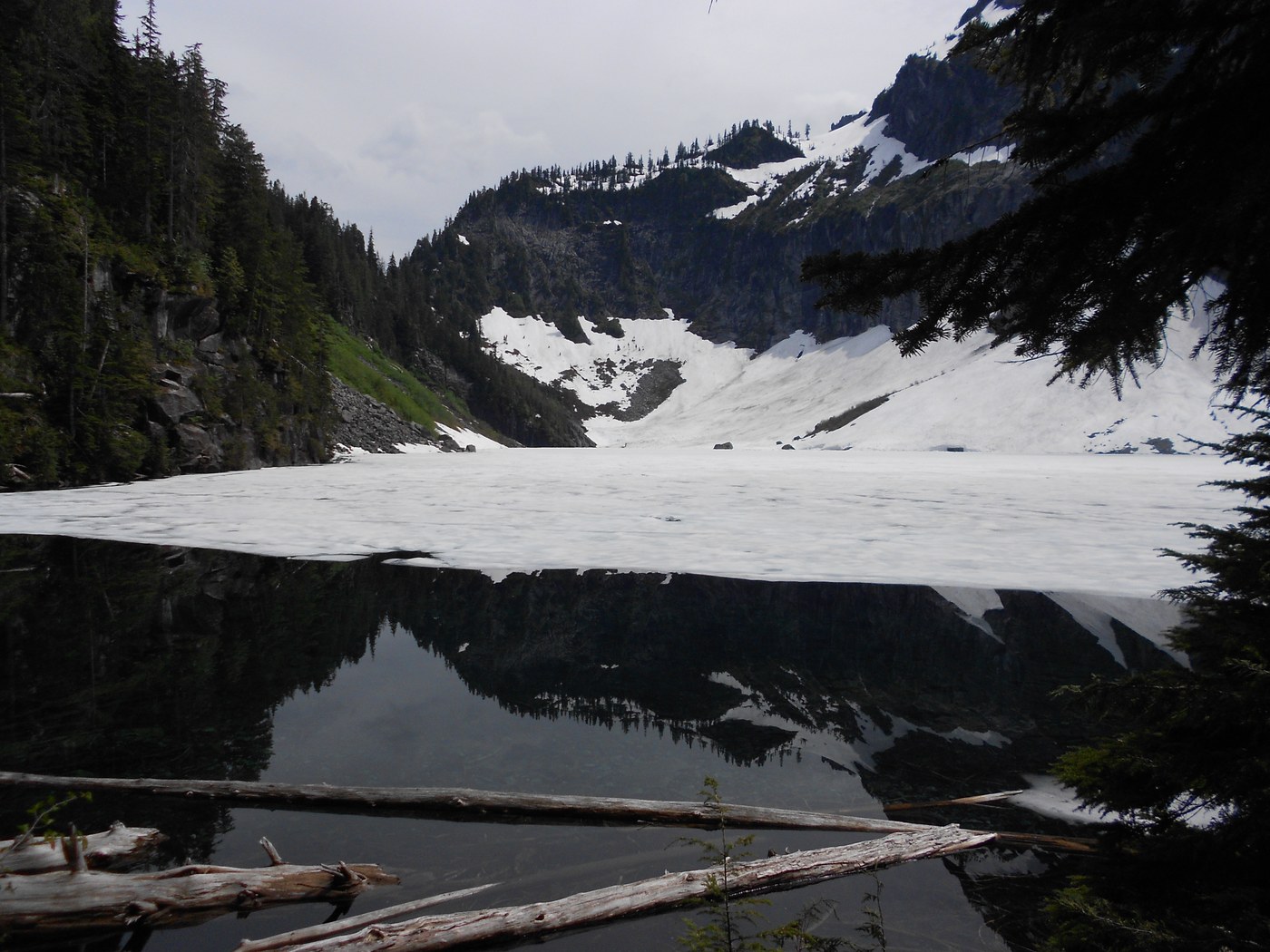 The main attraction, Lake Serene, is at the end of the trail. Since it’s summer, there are some mosquitoes hanging around the lake, and they may try to make a move as you take your lunch break. The lake lives up to its name – despite the big crowds, the lake somehow remains calm and quiet. I imagine it would look even prettier on a day when the sky isn’t grey.