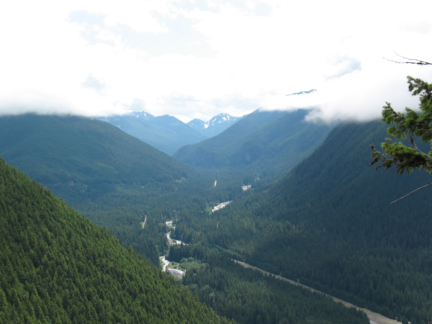 We decided to continue on towards the Palisades trail, which offers many switchbacks and a good workout. We found the three sided log shelter that looks perfect for camping, at about 2 miles or so from Little Ranger Peak. We followed the trail about .5 miles farther, but the cloud coverage was very low and there was little to be seen.